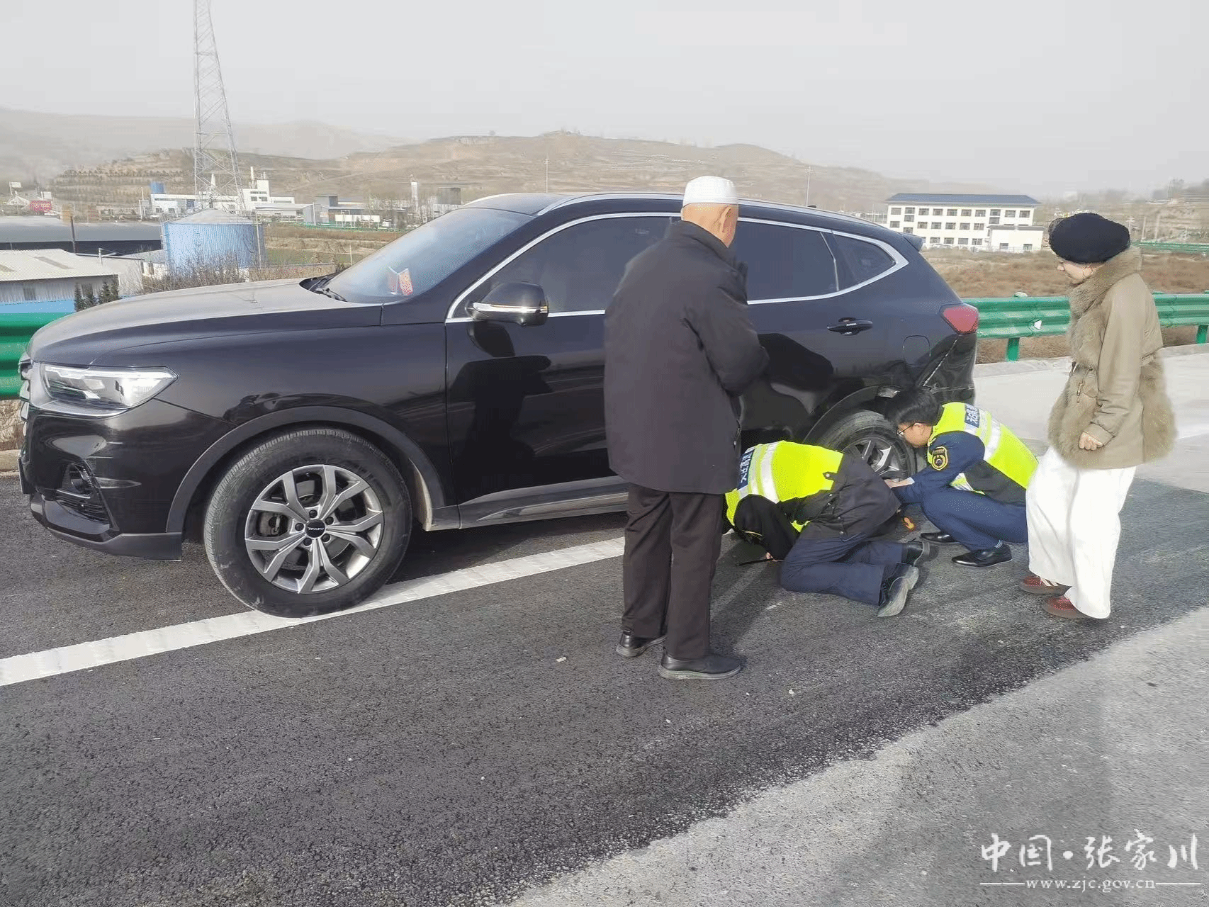 紧急响应,筑牢安全防护线。当日15时许,马女士驾车载着八旬老人行驶至龙山收费站匝道转弯处时,车辆突发爆胎,车身剧烈晃动。她迅速将车停靠在安全区域,却因未携带维修工具、不熟悉换胎流程陷入困境。接到求助后,当班站长立即启动应急服务预案,一边电话安抚马女士情绪,一边带领工作人员携带工具赶往现场。抵达后,工作人员第一时间在车辆后方设置警示标志,引导过往车辆减速避让,为救援筑起安全屏障。