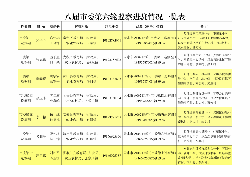根据市委统一部署,八届市委第六轮巡察组建7个巡察组,分别对7个县区的教育局(延伸巡察3所中小学校)、财政局、农业农村局和1个重点镇(延伸巡察3个村)开展提级巡察。截至9月27日,市委各巡察组进驻工作全部完成。