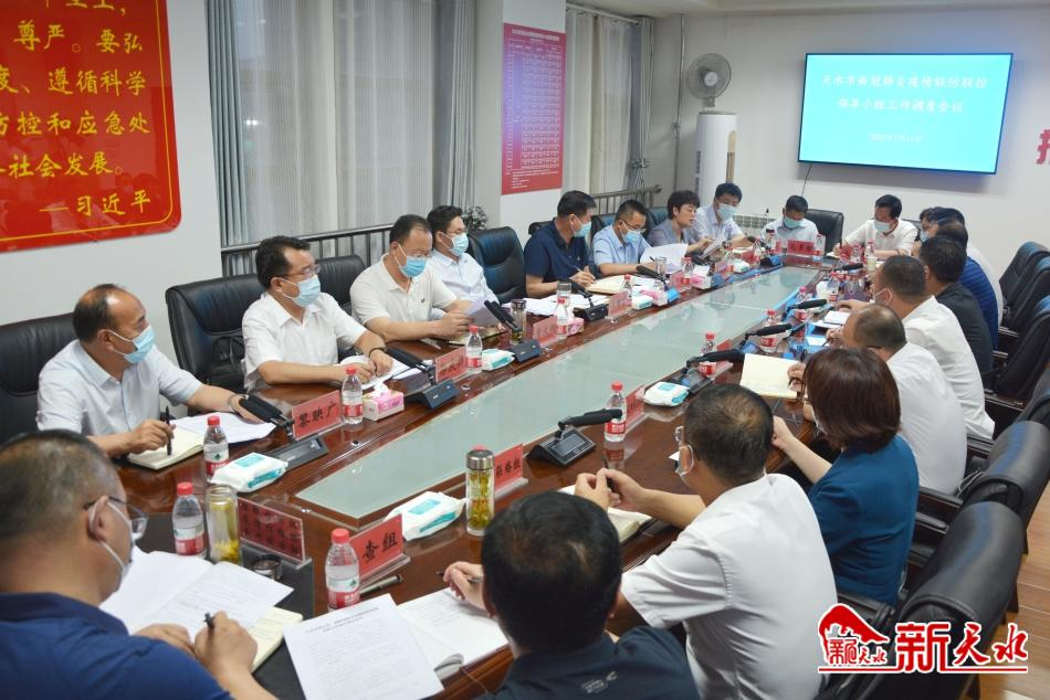 7月11日晚,天水市委副书记、市长王国先主持召开全市疫情防控工作调度会,传达贯彻全省新冠肺炎疫情防控工作调度会议精神,安排部署全市疫情防控工作。市领导刘天波、贾义翔、王文东、汪小娟、郭庆祥、韦淳、范多智,市政府秘书长黎映广参加会议。