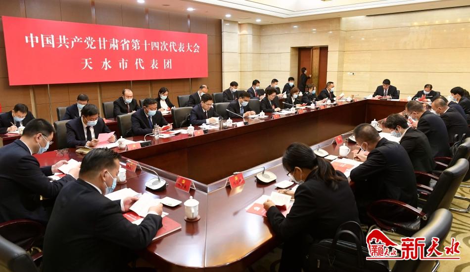 5月26日上午,出席中国共产党甘肃省第十四次代表大会的天水市代表团召开第一次分团会议,推选代表团团长、副团长,酝酿将在大会预备会议上通过的相关文件,学习《中国共产党章程》《中国共产党地方组织选举工作条例》。