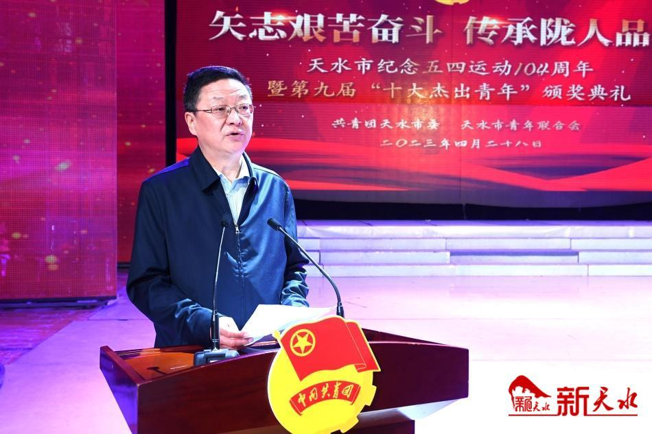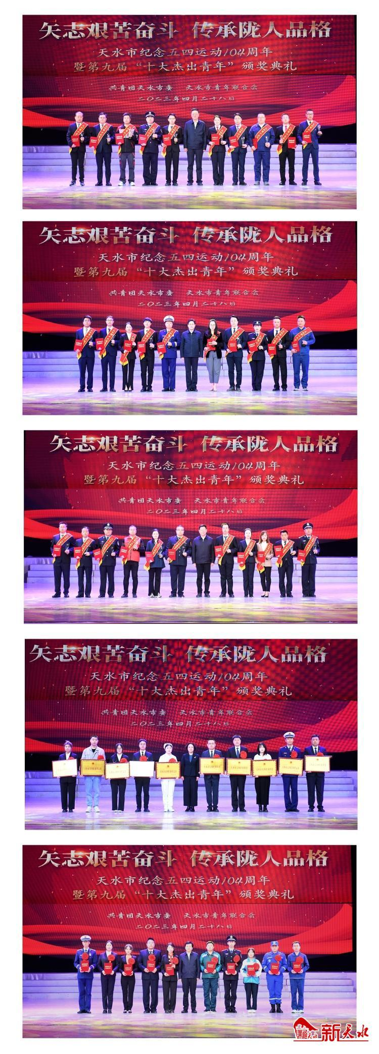 4月28日上午,天水市纪念五四运动104周年暨第九届“十大杰出青年”颁奖典礼在秦州剧院隆重举行。