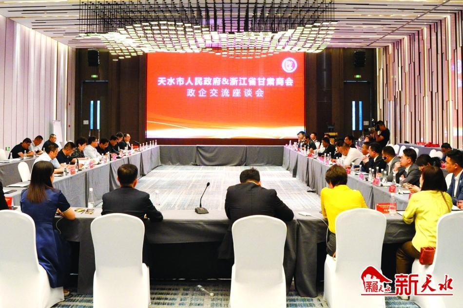 5月13日下午,天水市与浙江省甘肃商会在杭州市举行座谈交流会。市委副书记、市长王国先,浙江省甘肃商会会长王涛出席座谈会。副市长刘国军介绍了天水市情和产业发展情况。