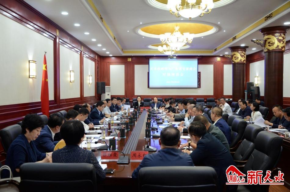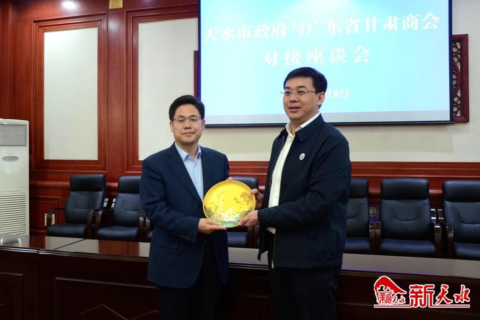 6月8日,广东省甘肃商会会长、广州市瑞民医药科技有限公司董事长史浩天带领广东省甘肃商会企业家考察团来天水考察调研。市委副书记、市长王国先主持召开招商引资项目对接洽谈会。副市长董小平、市政府秘书长黎映广出席会议。