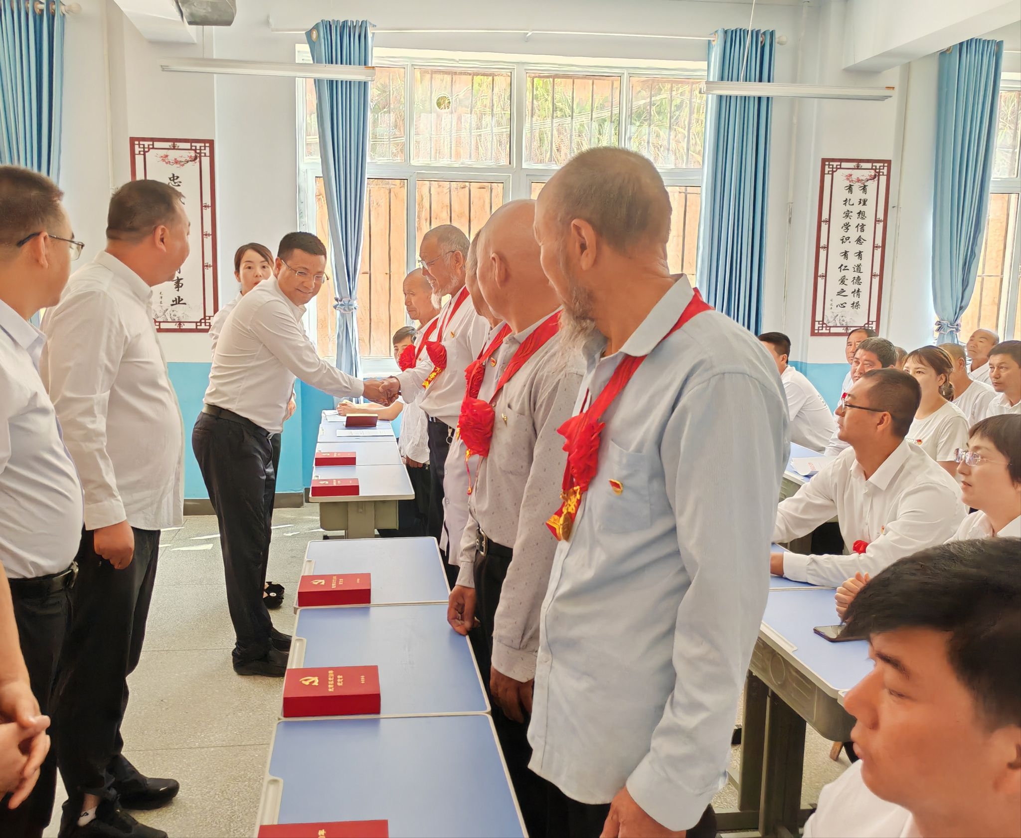 五十年党龄,五十载荣光。为党龄达到50周年的6名老党员集中颁发“光荣在党50年”纪念章。本次活动采用“集中颁发”+“上门颁发”形式,现场为老党员颁发“光荣在党50年”纪念章,勉励他们要永葆共产党员的本色,为年轻党员干部做好榜样。
