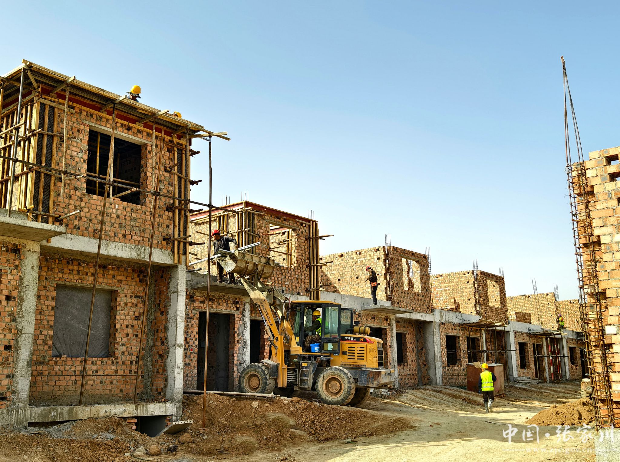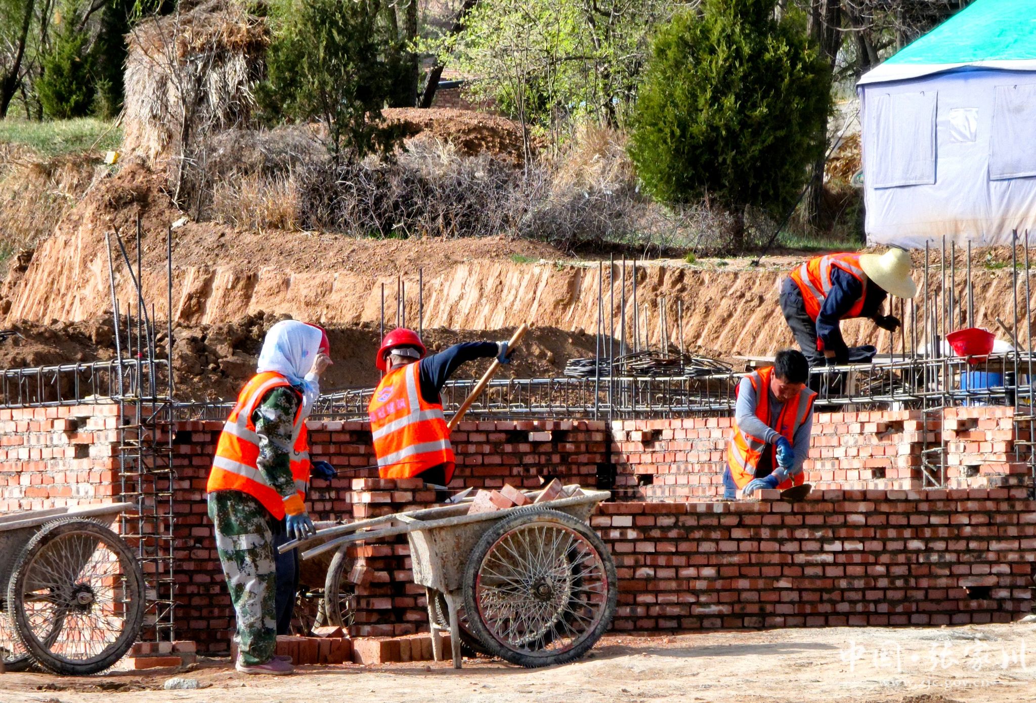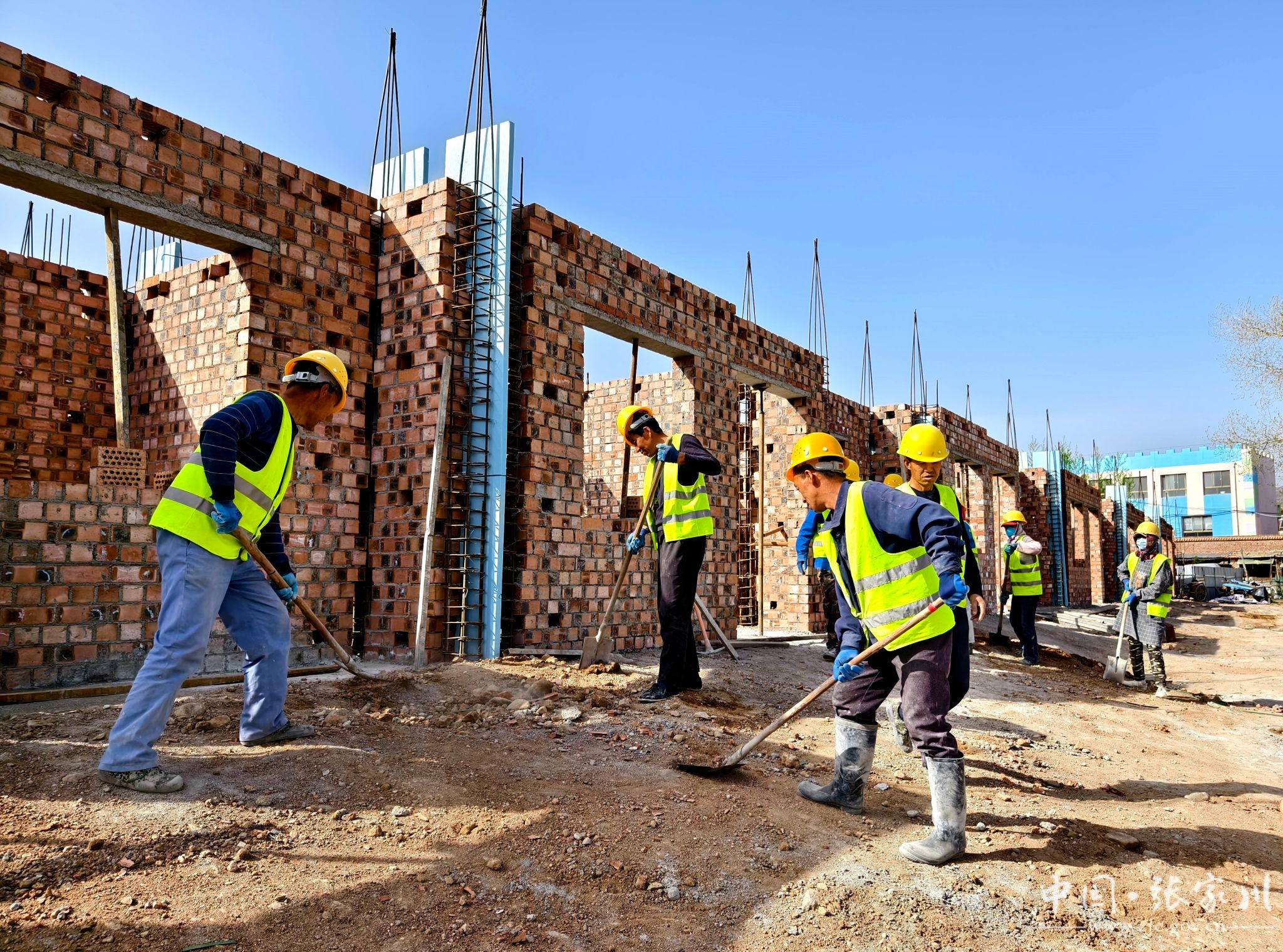 春潮涌动催人进,项目建设正当时。近日,在刘堡镇生态及地质灾害避险搬迁工程施工现场,只见多台大型机械来回穿梭,施工人员忙着砌墙、绑扎钢筋、搅拌砂石、浇灌水泥,紧张有序地进行各项施工作业,加速推进项目建设。