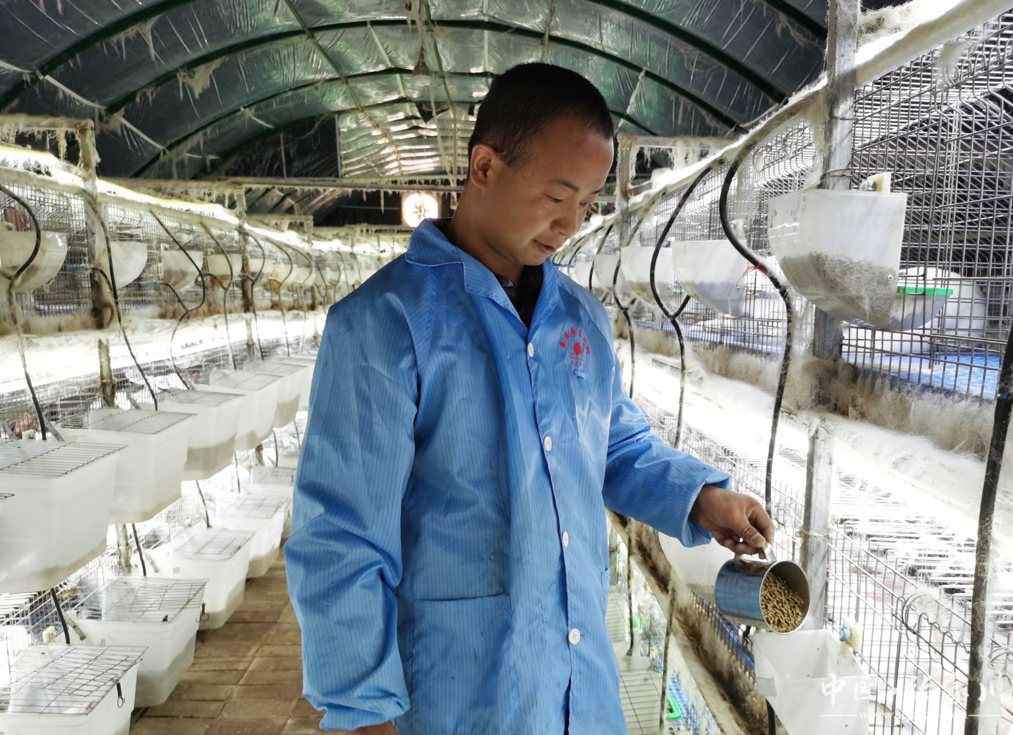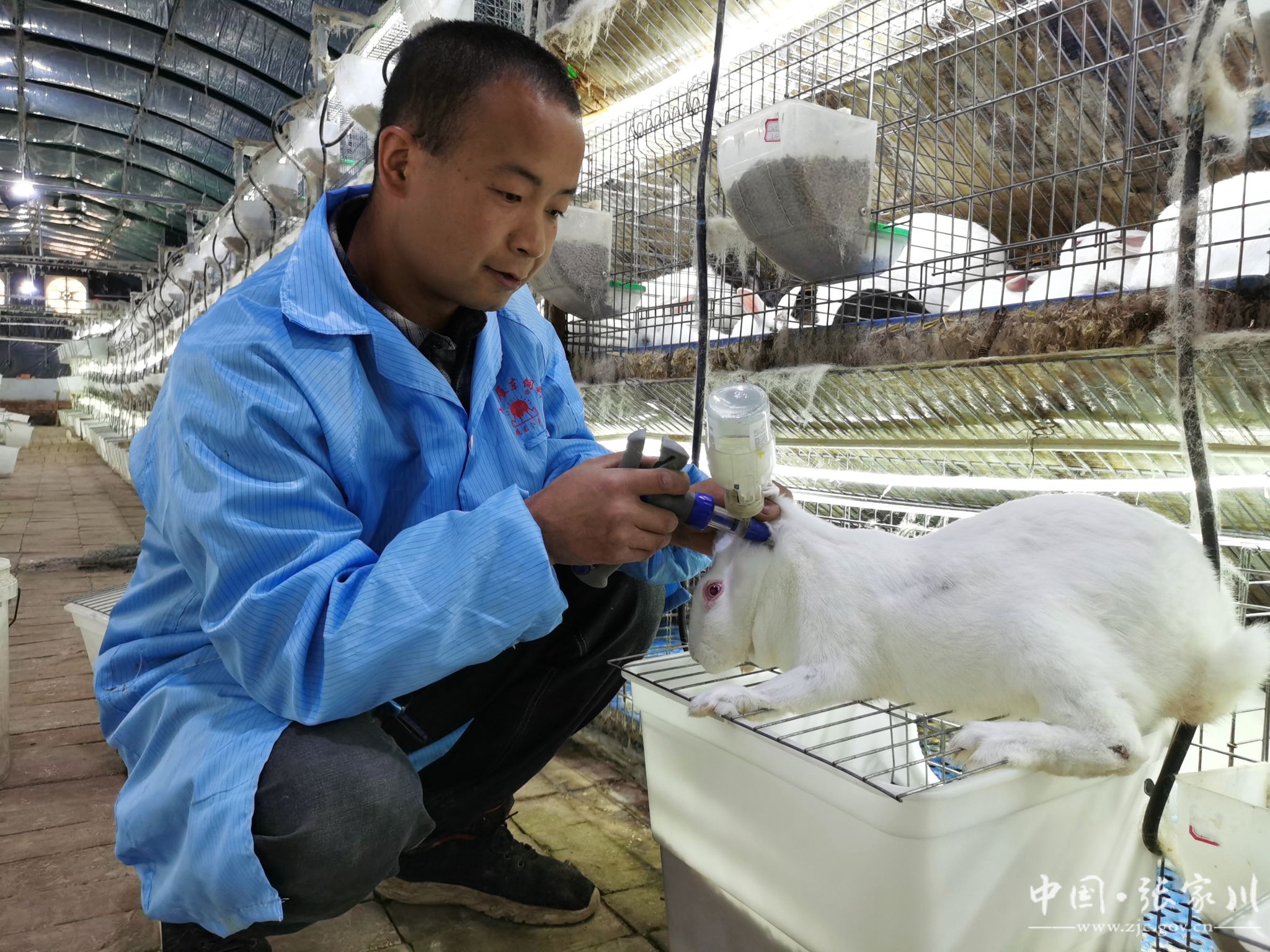 近日,记者走进位于张棉驿乡马窑村的张家川县荣红肉兔养殖家庭农场,一排排兔笼整齐划一,笼中一只只兔子圆滚可爱、毛发光亮,肥壮的大白兔正在悠闲地进食,不时摇头晃脑,煞是喜人。
