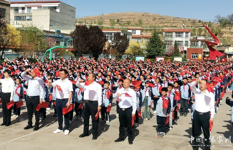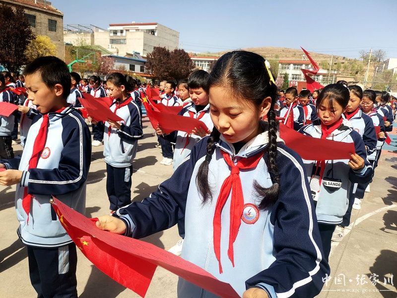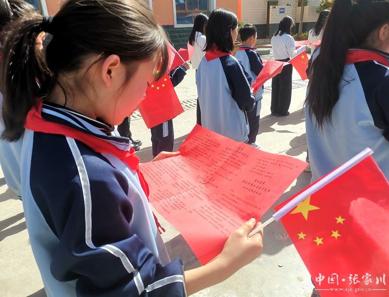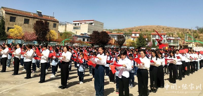 “红军不怕远征难,万水千山只等闲。”张家川镇干部及学生们精神抖擞地排列成方阵,他们全神贯注,激情四溢地诵读《沁园春·长沙》《道德经》等国学经典篇章。他们用坚定有力的声音,表达了对祖国的热爱,也展现了新时代青少年对红色文化的传承与发扬。