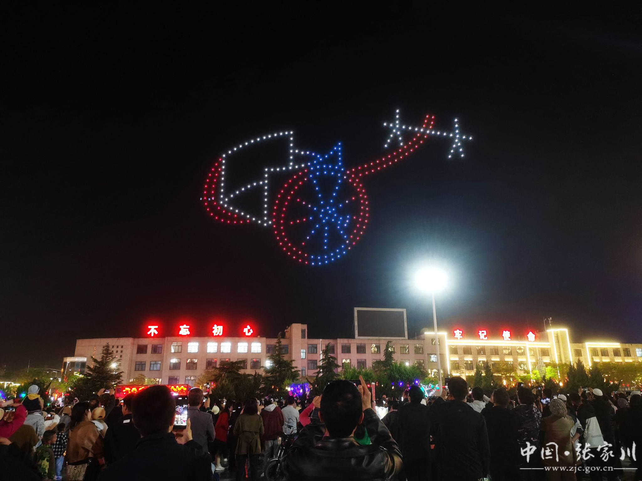 起落交错的队形、魔幻的灯光、雄浑的旋律,一架架无人机好似漫天飞舞的流星,以夜空为画布,以灯光为画笔,在队形变幻与灯光变化中,描绘出一幅幅张家川振兴突破的新画卷。现场瞬间沸腾!大家纷纷举起手机或相机,拍下震撼瞬间,向全国各地的朋友分享展示。