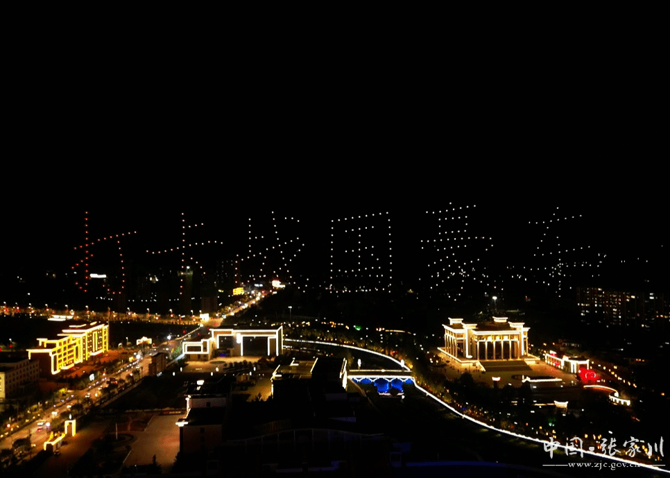 20时30分,张家川县体育中心,300架无人机在美丽夜空的映衬下腾空而起,在历史文化与现代科技交相辉映中,让璀璨炫目的灯光随着无人机飞翔点“燃”夜空,为市民献上一场华丽的视觉盛宴。