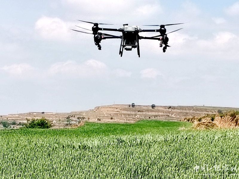 走进田间地头,装载着农药的无人机在技术工程人员的遥控下,沿着麦田低空飞行,开展小麦“一喷三防”作业,促使小麦增产增收。与传统农药喷洒方式不同的是,利用无人机进行农药喷洒具有精准、高效、穿透力强等优势。
