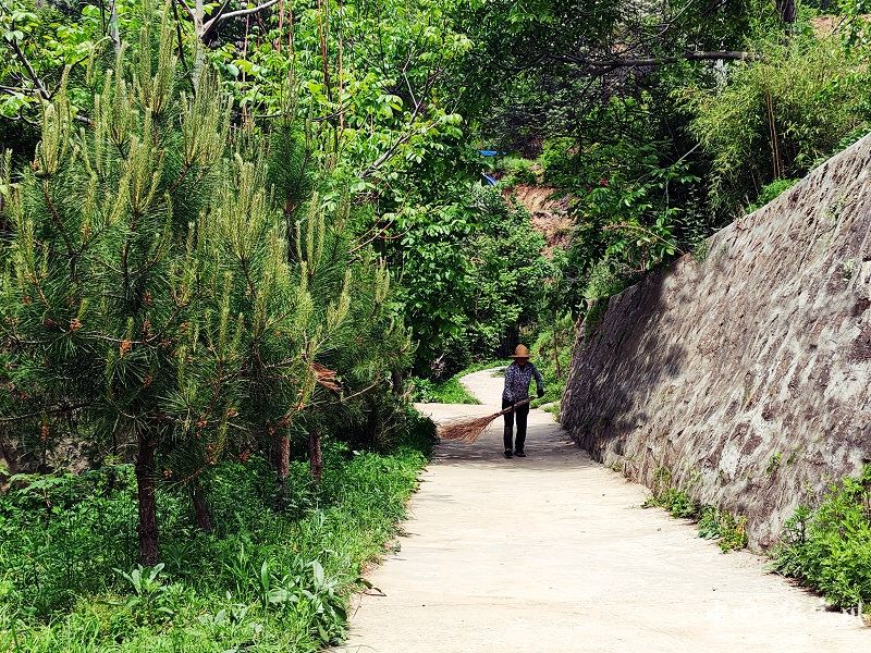 曲径通幽有人家,采菊东篱把花插。一路鸢尾草,装饰着细碎的梦,阿姨的扫把轻抚通向家的小道,多扫几十米似乎成了她对生活的执着,大家潜移默化的相互影响着,相互体谅着,最干净、最美的村子是他们共同付出的结果。