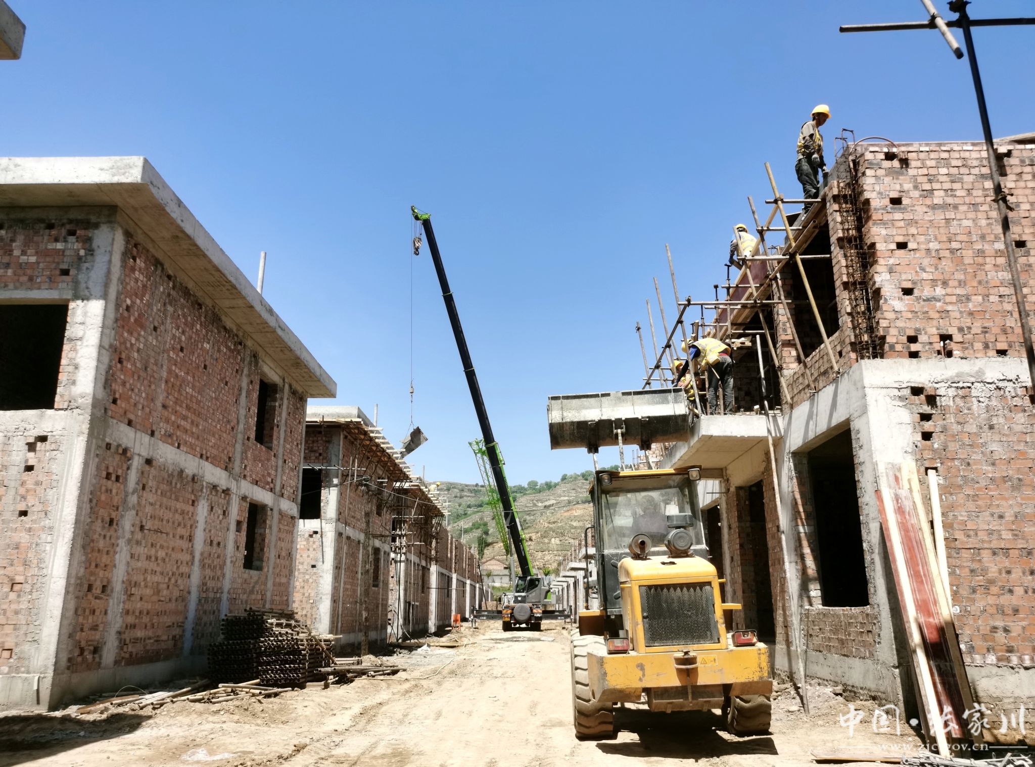 连日来,川王镇生态及地质灾害避险搬迁安置项目开启“夏日攻势”,全力跑出建设“加速度”。在项目施工现场,记者看到,塔吊机不停运转,挖掘机、推土机轰鸣声不断,施工人员佩戴安全帽,或砌砖、或浇筑,紧张有序地进行各项施工作业,加速推进项目建设。