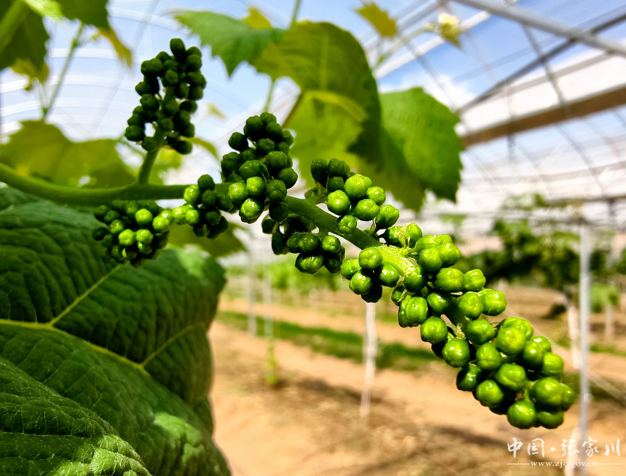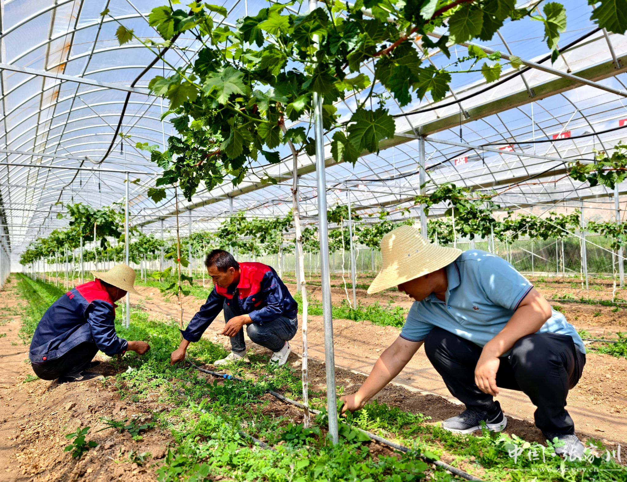眼下,农作物进入迅速生长期,也是田间管理的关键时期。走进坐落在张家川县川王镇马达村的阳光玫瑰葡萄园,一排排整齐的大棚在阳光的照耀下熠熠生辉。走进大棚,满目翠绿,一串串葡萄颗粒饱满,长势喜人。“产业工人”正忙着进行葡萄梢枝绑蔓、打副梢等“精细活”管理,为丰产增收打下基础。