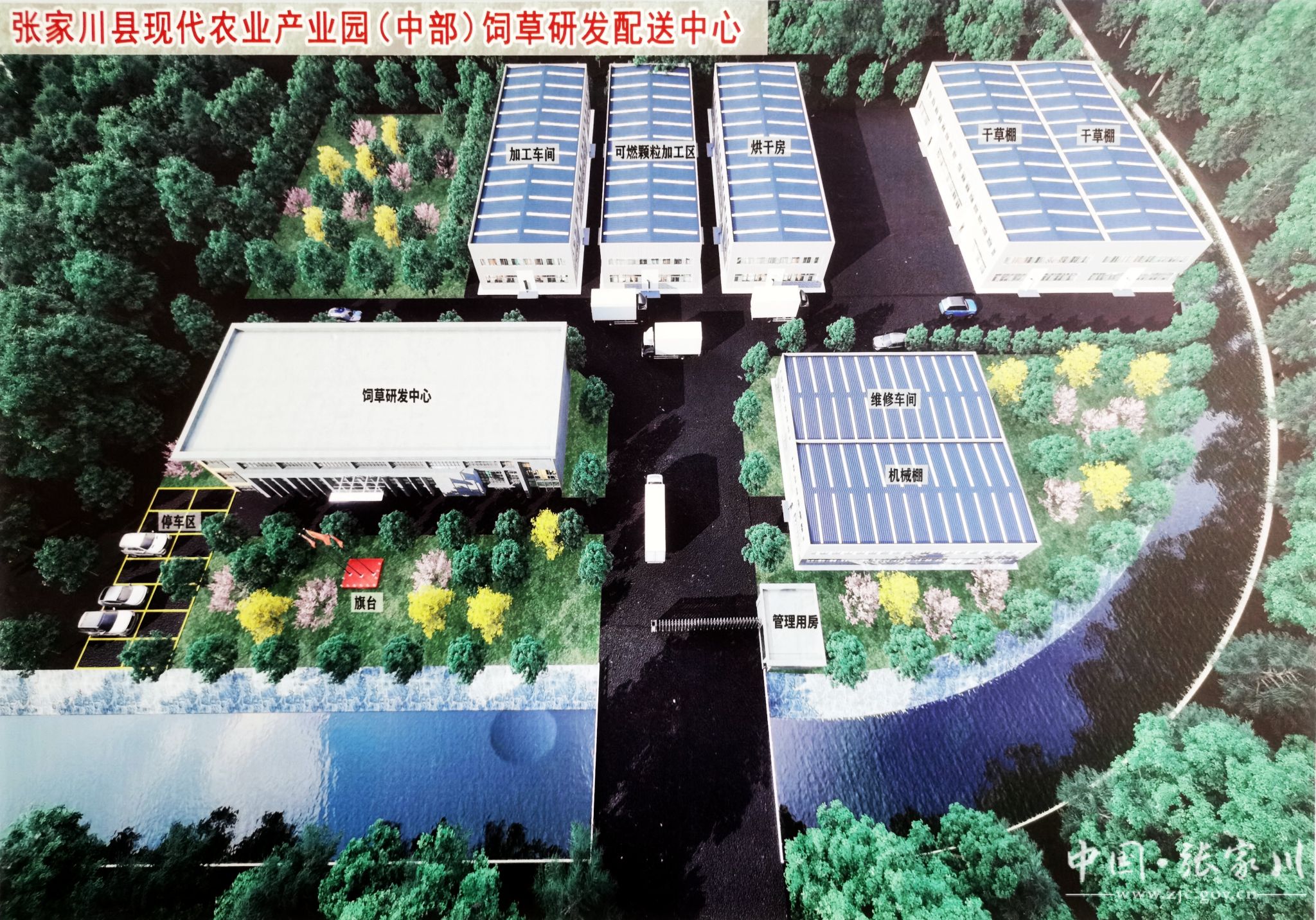 张家川县现代农业产业园(中部)饲草研发配送中心建设项目,占地面积53360平方米,建设内容包含饲草加工车间、可燃颗粒加工区、烘干房、干草棚、维修车间、机械棚、饲草研发中心、检测检验室、消毒室、现代饲草展示厅、全功能大数据展示厅、消杀区、 DRSTE 安全消防系统筹功能室。项目建成后,张家川县现代农业产业园(中部)饲草研发配送中心将是一家集饲草研发、生产、加工、销售为一体化的龙头企业,致力于打造牛羊饲草产、学、研、教四维一体产业链。饲草配送中心执行统一生产标准、统一管理模式、统一品牌经营,预计年生产各类饲草20万吨,园区采取“配送中心+订单+农户”的运营模式,实现饲草产品订单式配送,加快饲草料商品化、品牌化进程,建立现代化营销网络。