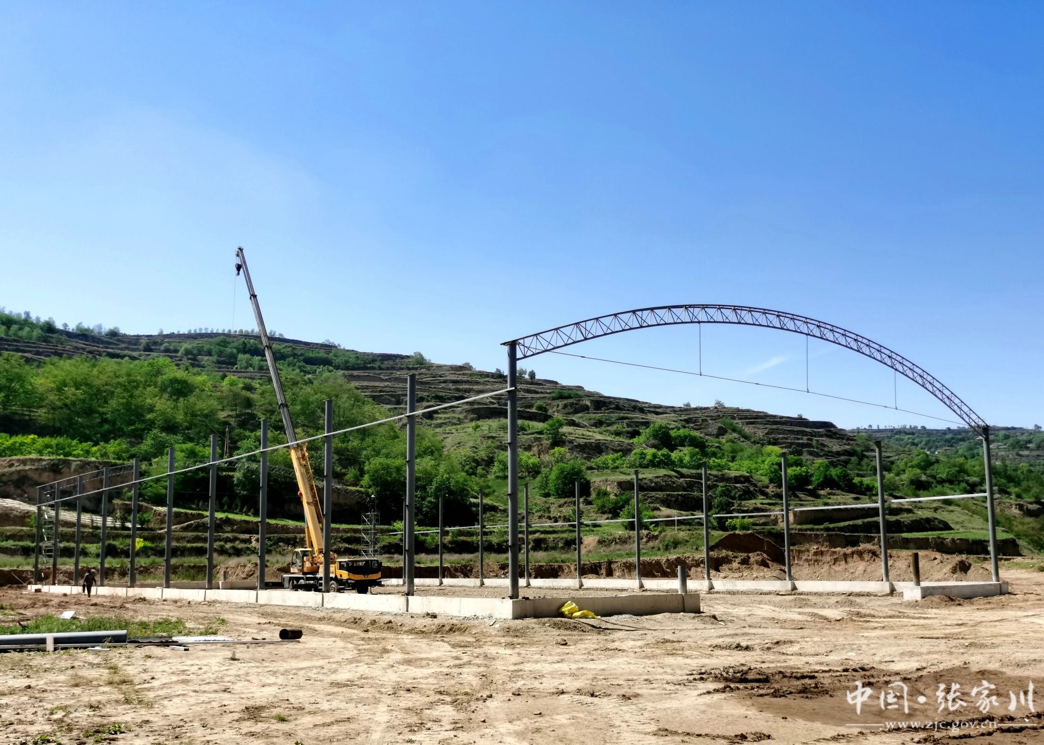 在张家川镇赵川村项目施工现场,记者看到,挖掘机、塔吊机等机械设备挥舞着铁臂进行施工作业,工人们正在选料、组装、立柱、上梁、框架连接……整个施工过程分工明确,紧张有序。