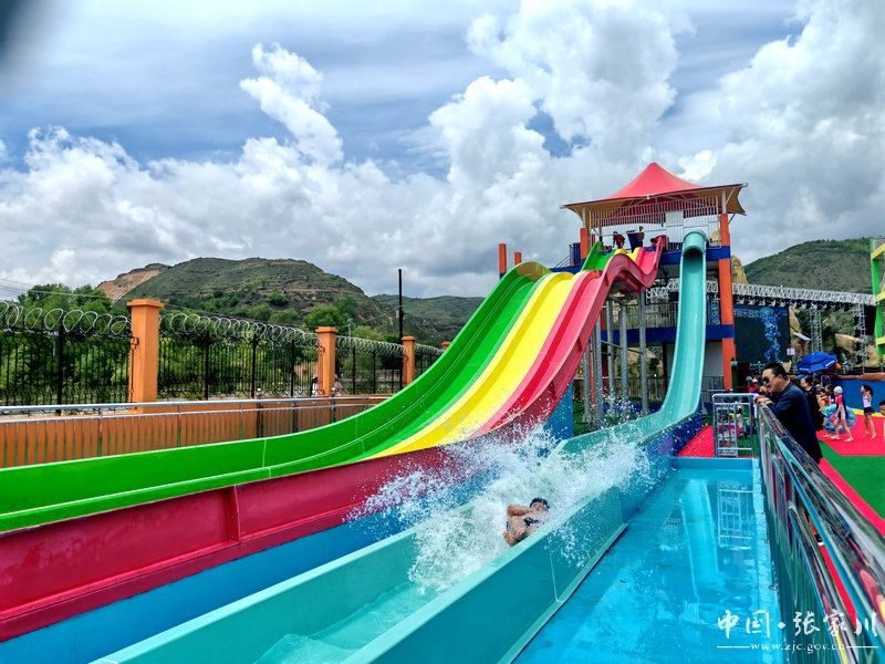 陇道水畔颐乐园园中设置了湖泊、河流、沙滩,拥有糖果水寨、亲子滑梯、彩虹滑梯、高速滑梯、造浪池、巨兽碗组合、漂流河、螺旋滑梯组合、深渊滑梯等多种惊险、刺激的水上游乐项目。这些项目既适合年轻人挑战刺激,也适合家庭游客享受亲子时光,相信它将为张家川的旅游业发展注入新的活力。