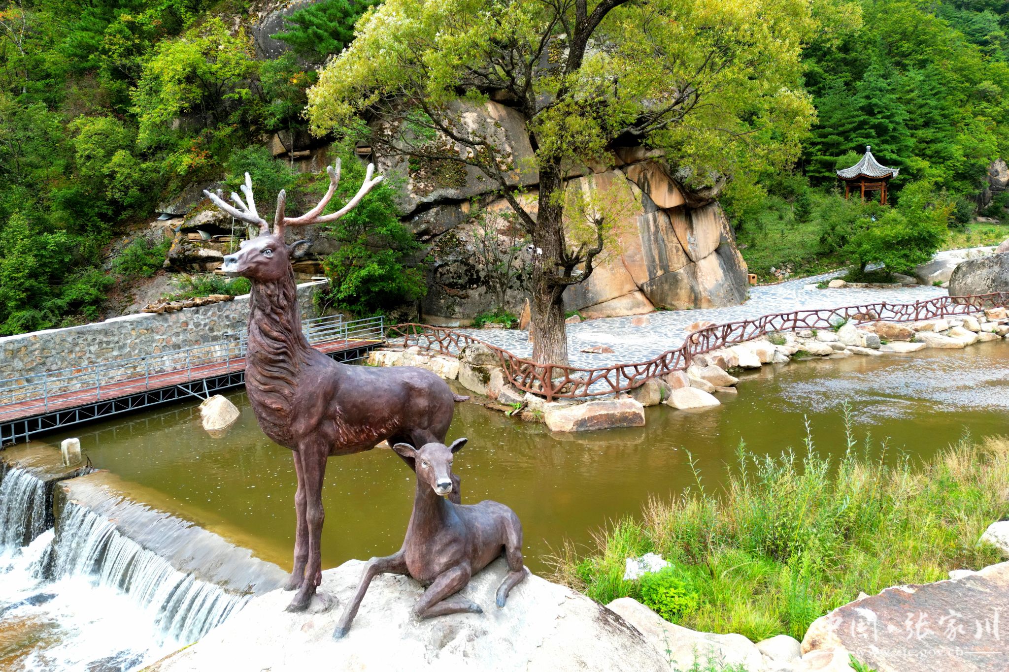 在党建引领下,花园村党支部发挥基层党组织的作用,充分利用本地资源,结合农业、文化和旅游三大产业,打造出了一系列独具特色的农文旅融合项目。五龙山、老龙潭、斩蛇崖、小麦积、五指山、青石崖、石人峰等自然景观展示着大自然的鬼斧神工和钟灵毓秀;五龙山云凤寺遗址、佛爷崖太极八卦图、二郎神脚石印、拴马柱等人文景观与大自然巧妙结合、相得益彰,花园村依托得天独厚的自然风光和丰富的人文景观,景区游览路线形成一中轴、一大环、四小环的格局。