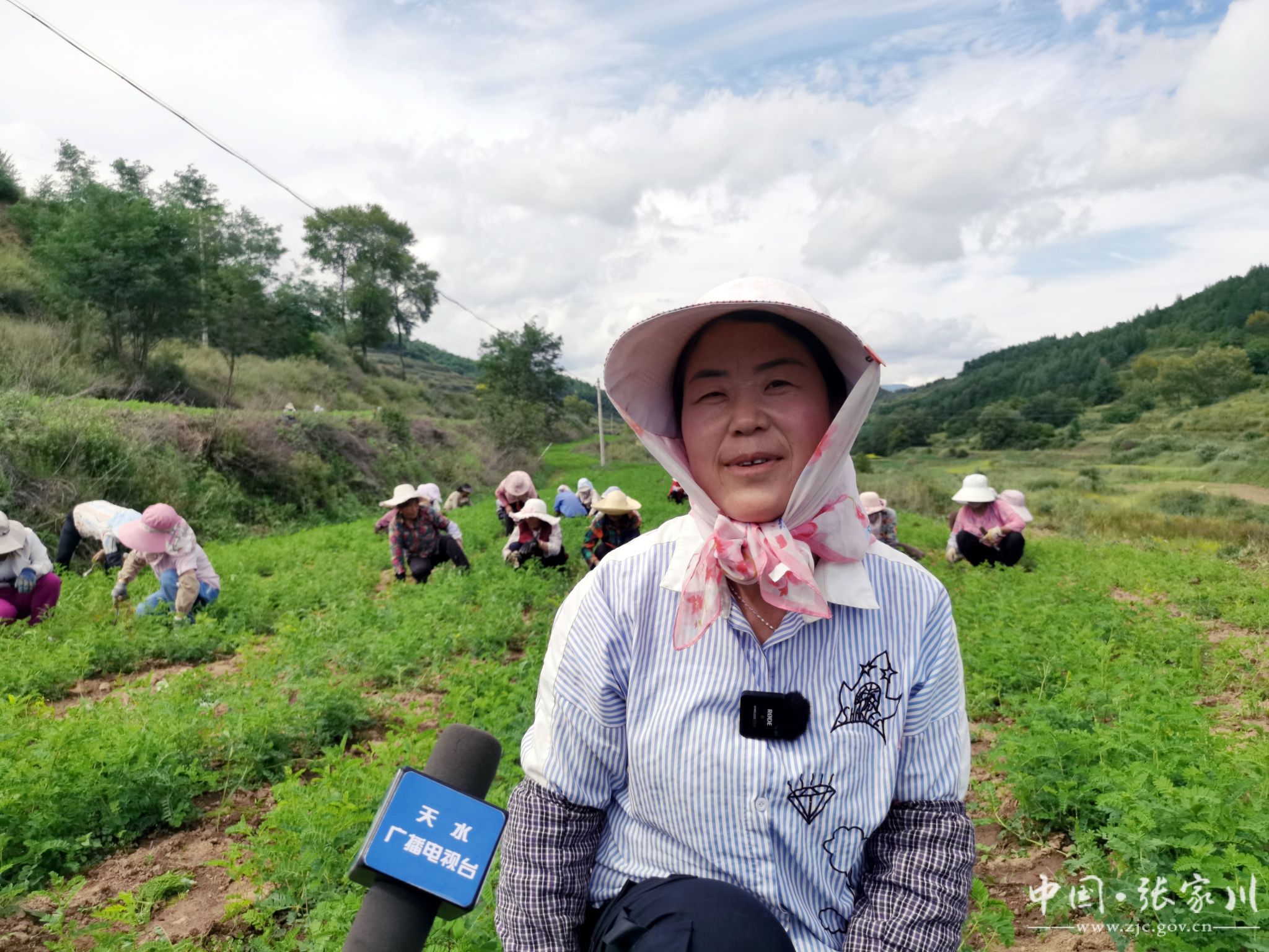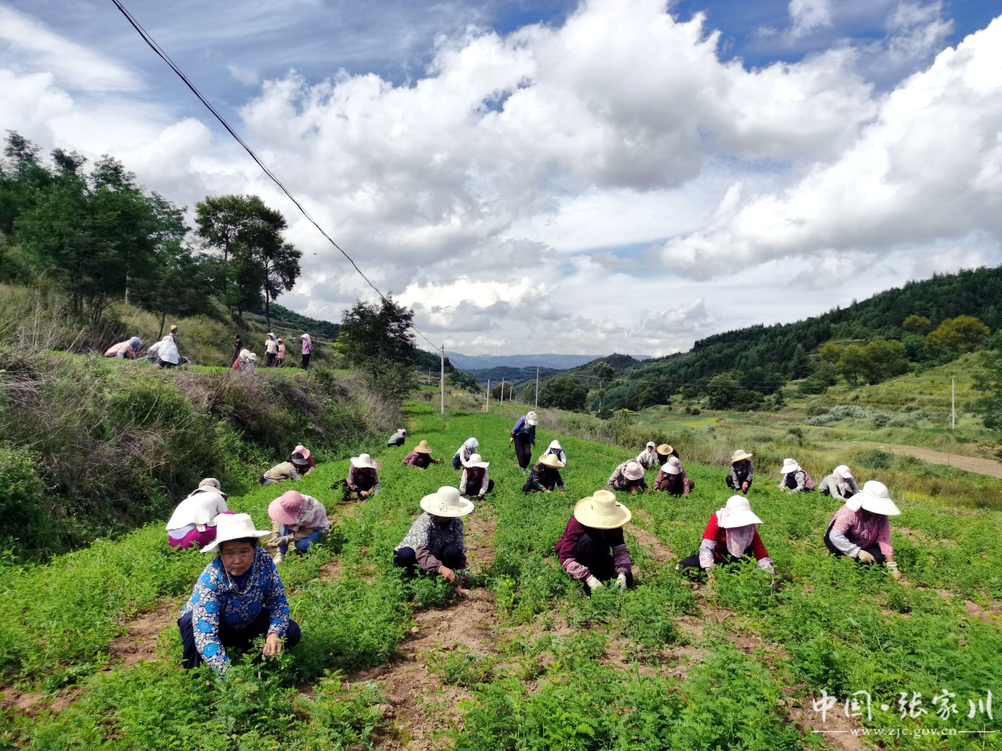 在恭门镇张窑村、团结村的千亩中药材种植基地,绿油油的药草铺满了田地,放眼望去,满目葱茏,连片的中药材在阳光的沐浴下茁壮成长,预示着又一个喜人的丰收。基地正组织当地七十位村民忙着除草、固土等管护工作。