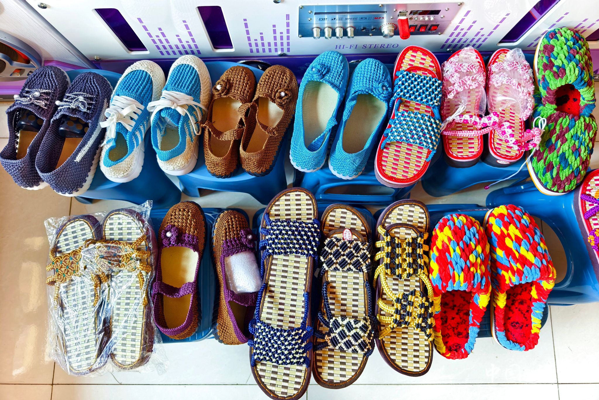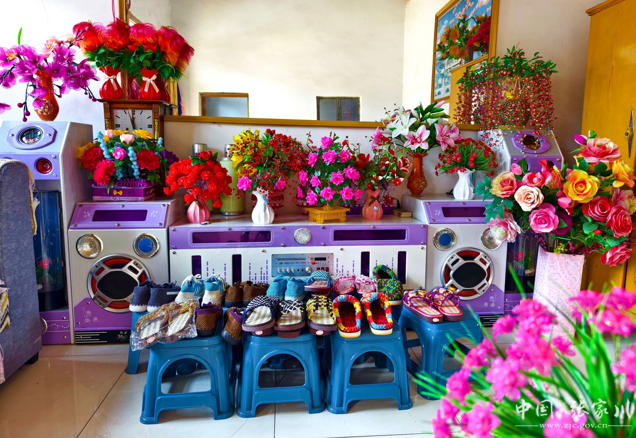 在大庄村21号糟海者家里,我们见到了她正在带领家庭妇女进行手工编织,她们用一双双巧手编织出一件件精美的作品。逼真的各类珠花、绢花手工艺品、实用的纸巾盒、卡通可爱的儿童鞋子,以及样式新颖的成人帽子、包包和鞋子,这些都是出自于手工编织能手糟海者和她的姐妹们。