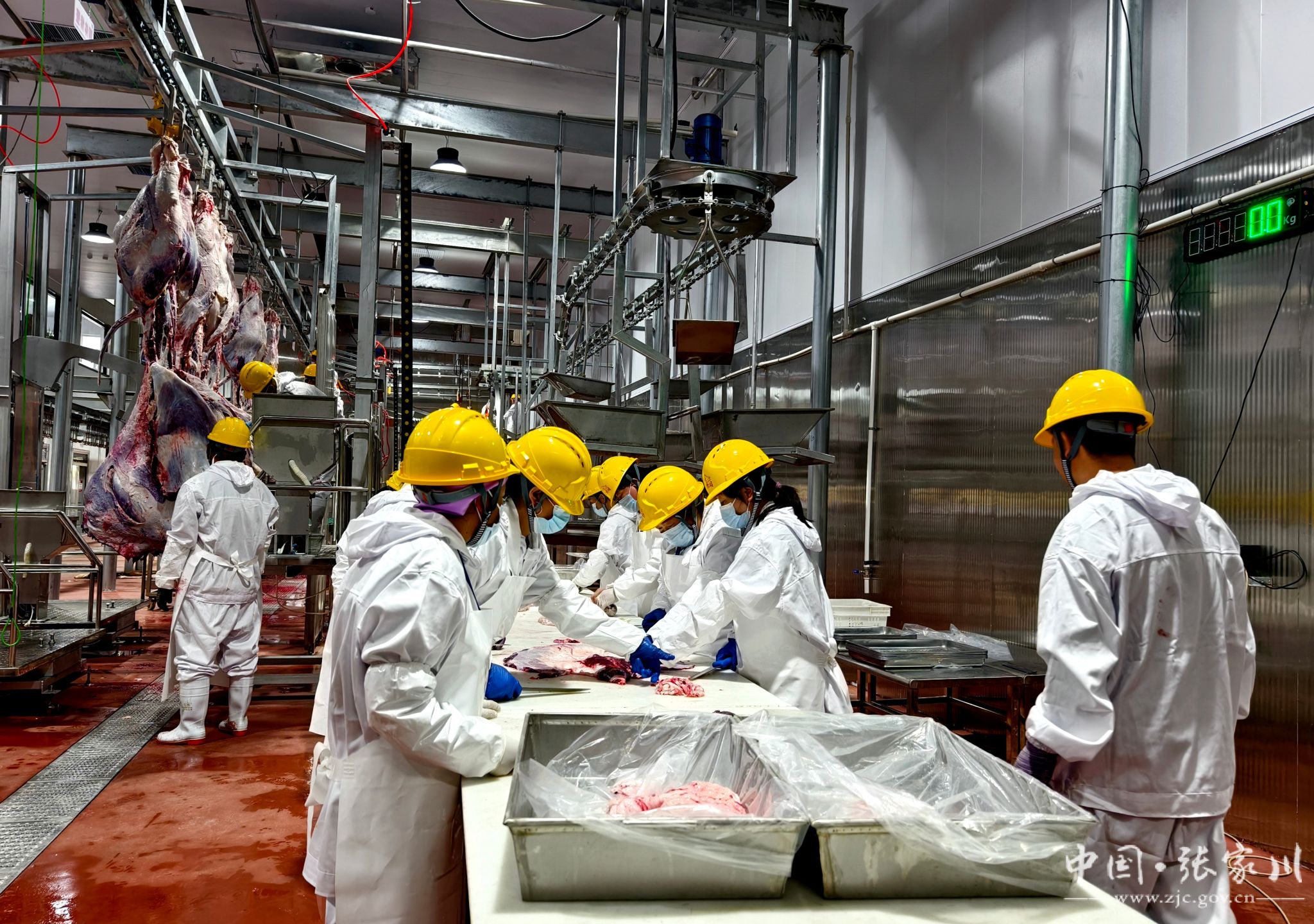 据悉,该项目一期投资5000万元,建有牛羊待宰间1200平方米,牛羊屠宰加工车间4000平方米,分割、包装车间1600平方米,恒温库11000立方米,业务用房4000平方米和附属设施。二期投资6700万元建设熟食加工、体验中心、交易市场、肉牛养殖及有机肥加工板块,形成以专业农户、生产加工企业、冷链物流企业为支撑,集采集、加工、贮藏、批发、配送、检验检测、信息交流等多功能为一体的综合型畜产品冷链体系,该项目引进天水顶乐伊禾食品加工有限公司承建运营。年屠宰量达3万头,羊10万只,极大满足了全县牲畜屠宰需求。公司肉源以张家川县关山腹地培育的国家地标产品“张家川红花牛”为主,公司通过ISO质量体系、环境体系、职业健康安全体系、食品安全体系四大质量体系认证,建有行业自动化高标准的牛羊屠宰生产线各一条,精品分割生产线二条。