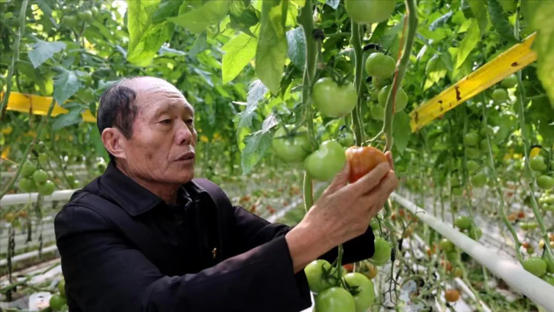 目前,西辛庄村共拥有20多家各类企业,安置劳动力约3000人,总产值达5.2亿元。图为李连成查看西红柿长势。(濮阳市人大常委会供图)