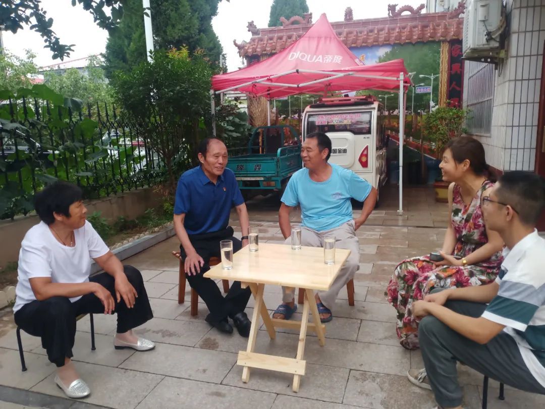 在李连成代表的带领下,西辛庄村由一个贫困落后的偏僻村,变为全国文明村。图为李连成(左二)和村民一起话家常。(濮阳市人大常委会供图)