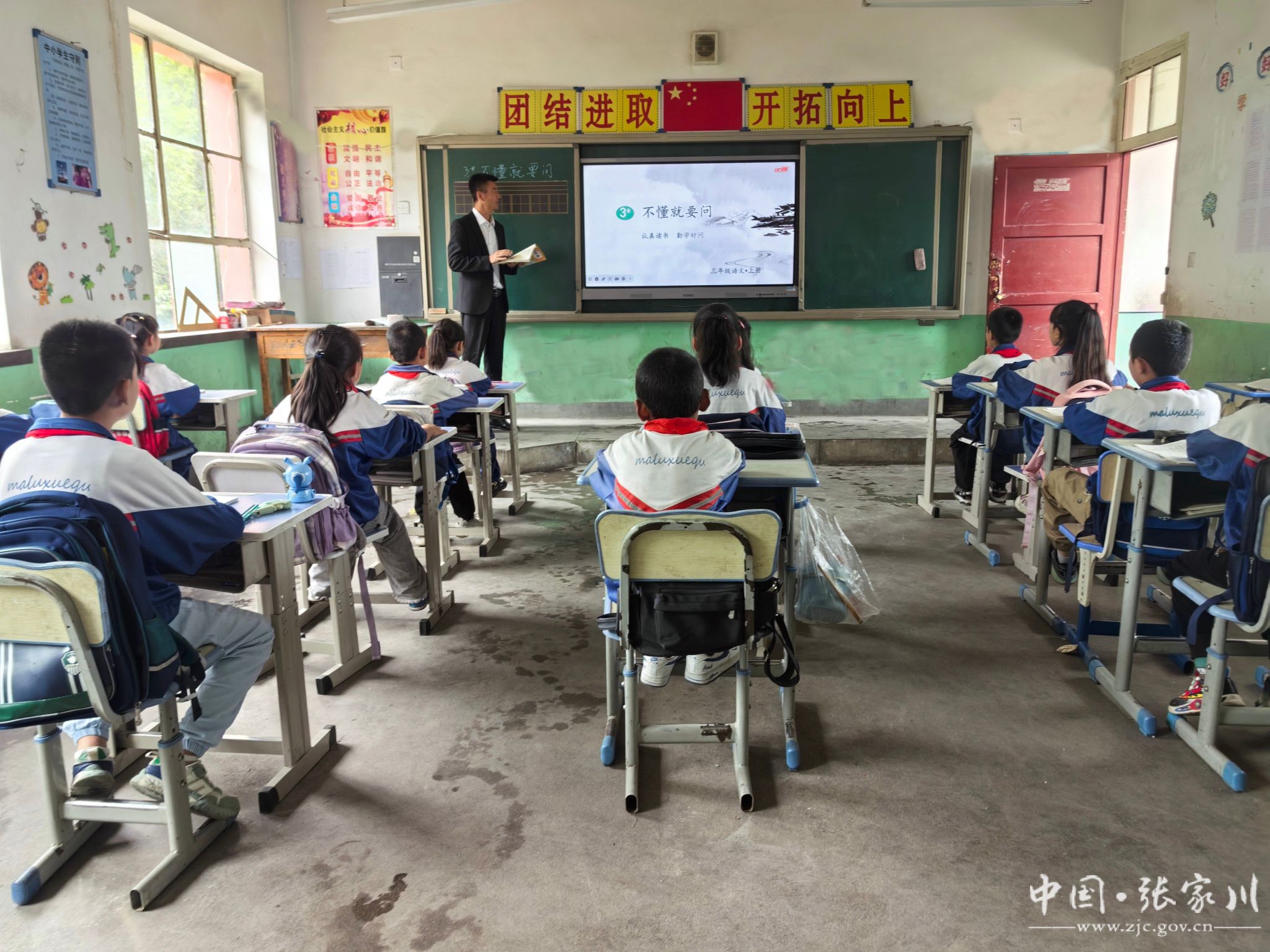 在第40个教师节之际,记者走进马鹿镇大湾小学,朗朗的读书声犹如一股清泉响彻整个村落,与关山初秋玉色交织在一起,构成了一幅“丝路大关山 书香张家川”的美丽画卷。这时,马利合老师正在给三年级的学生上语文课,“圈”这个字是不是多音字?同学们,谁能把它概括一个四个字的词语?大胆举手……”,学生们争先恐后的举手发言,相互讨论,互相学习。引经据典、生动活泼的教学方式调动了同学们的积极性,提高了课堂质量。