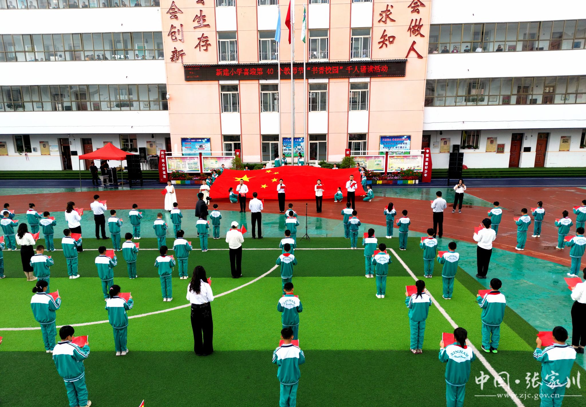 ——张家川县新建小学举办喜迎第40个教师节“书香校园”千人诵读活动