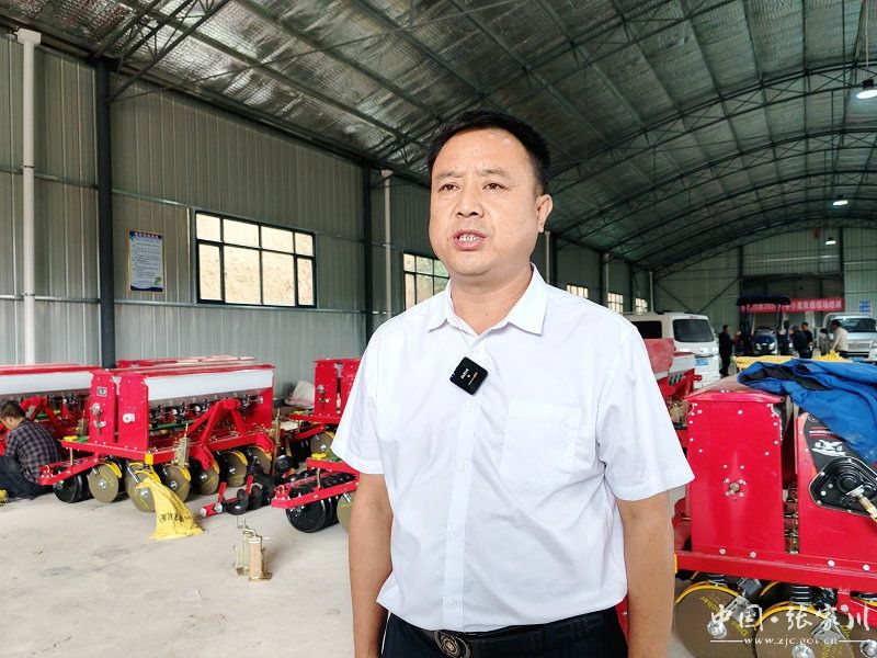 龙山镇顺源农机合作社负责人杨金虎说道:“今天参加了由县农业农村局主办的冬小麦秋播现场会,听取了国家科技特派团专家的现场培训,受益匪浅,领取到小麦精量播种机2台,小麦良种2.5万斤。今年我将种植冬小麦500亩,其中全膜穴播100亩。近年来,县农业农村局、镇政府对我合作社从资金、物资、技术等方面给予了大力支持,我从心底感谢党和政府的好政策,增加了我的种粮积极性,也带动了周围群众入社务工,增加收入。”