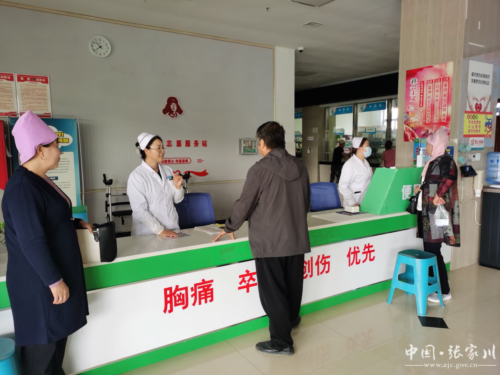 记者在门诊楼的导医台看到,不断有病人和患者家属问询,工作人员耐心解答。中药房里,两位中医药师熟练地拿着秤盘取药,在眼科,医师李小平认真细致的为一位年长的患者诊治眼疾。