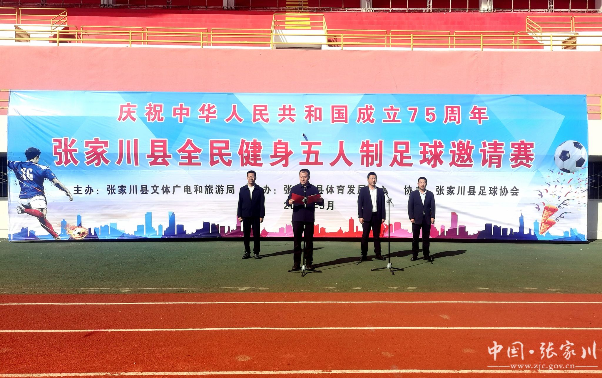 秋风送爽,硕果飘香。为热烈庆祝中华人民共和国成立75周年,认真贯彻落实“体育强国”战略部署的重要举措,深化各兄弟县交往交流交融、互帮互助互进,9月21日上午,张家川县全民健身五人制足球邀请赛在县体育中心足球场鸣哨开赛。县政府副县长马永平出席开幕式。