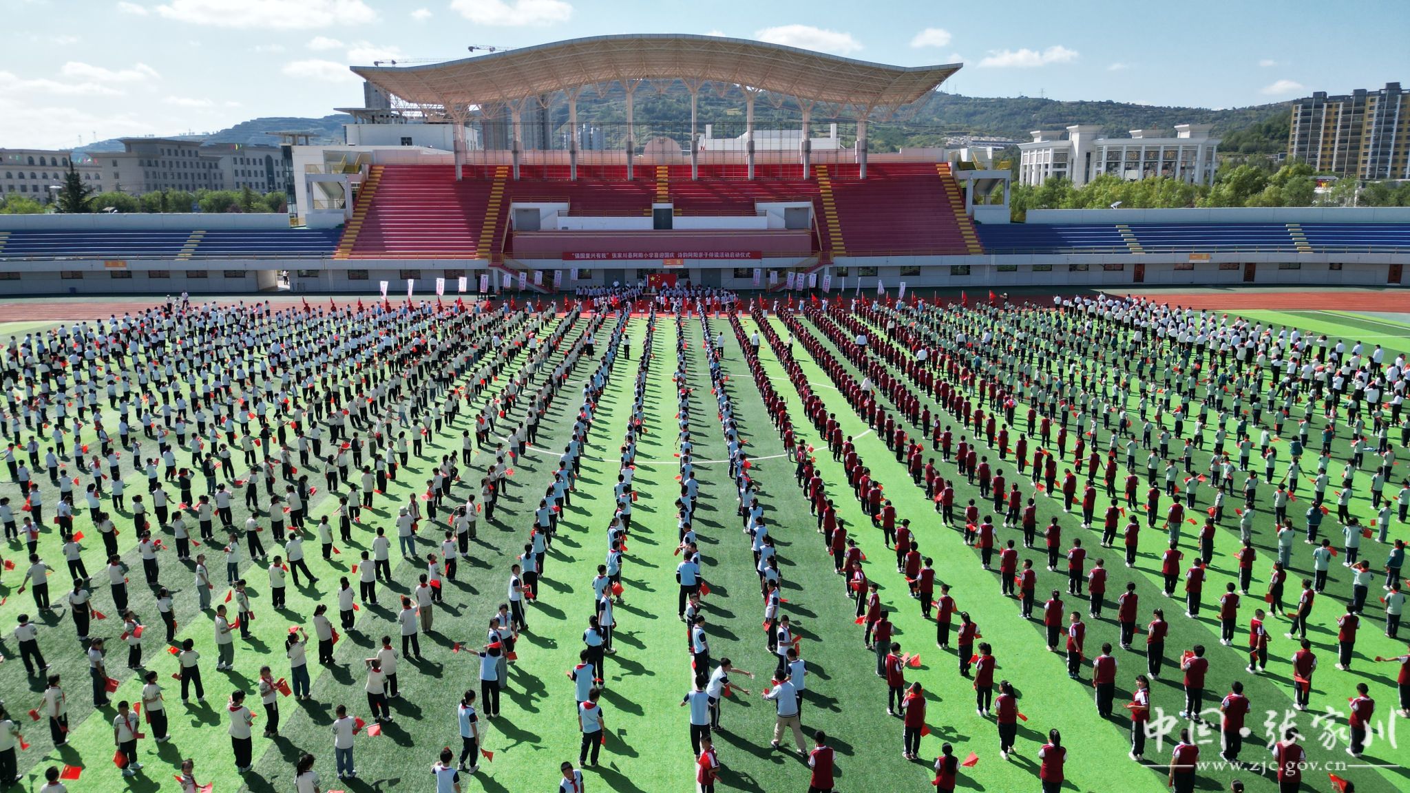 9月26日,张家川县阿阳小学举行“强国复兴有我”喜迎国庆诗韵阿阳亲子伴读活动启动仪式。阿阳小学2400名师生和400名家长代表及县委宣传部、团县委、县妇联、沈遐熙革命纪念馆、博物馆、图书馆等单位相关负责人参加此次诵读活动。