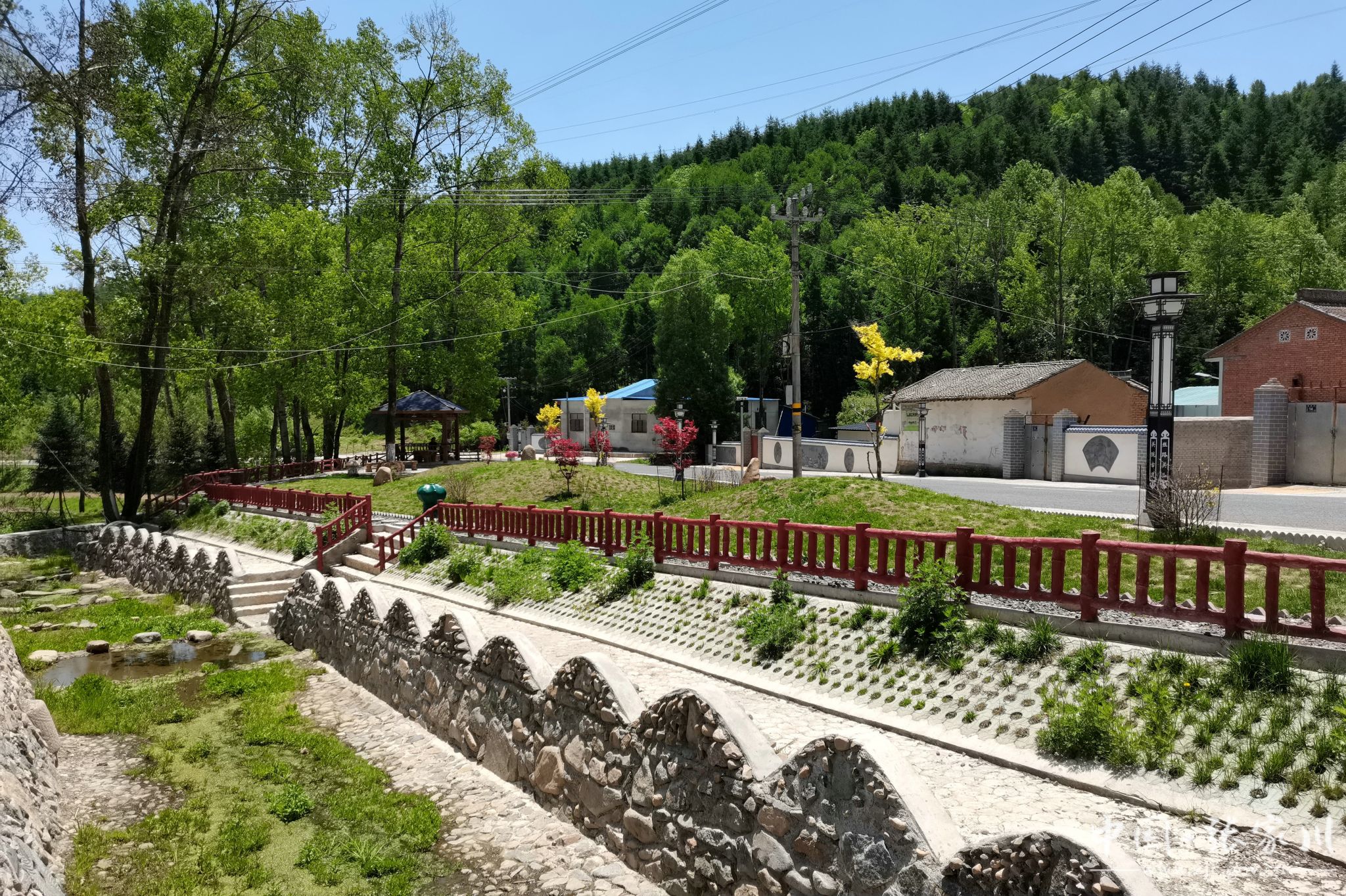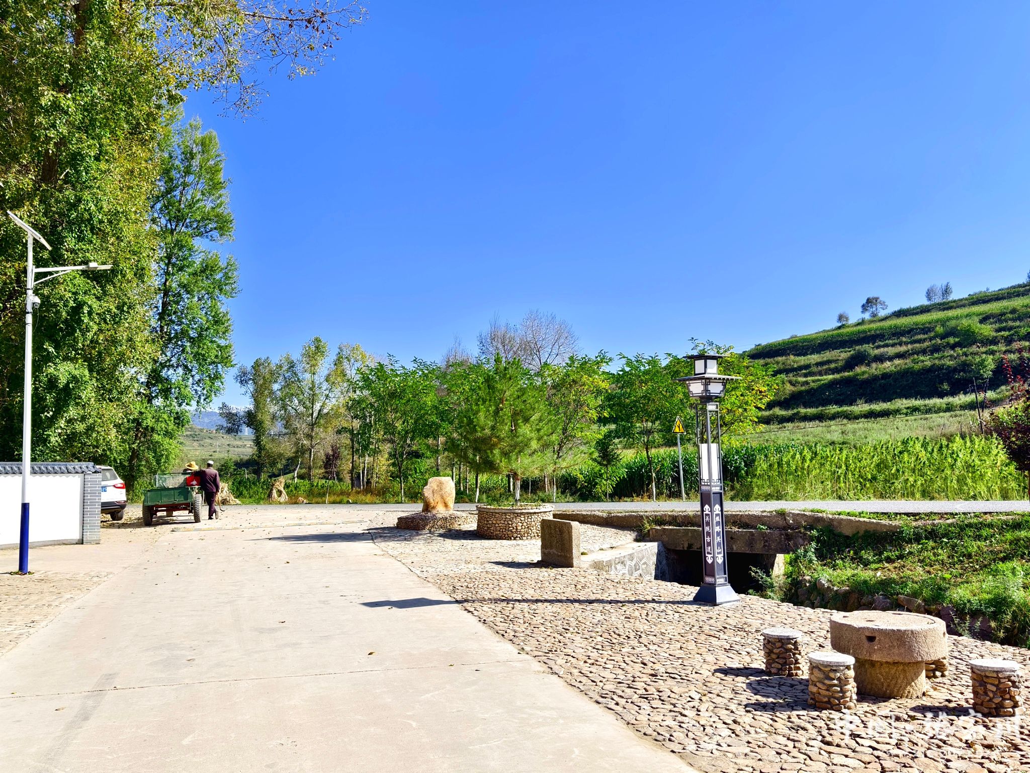韩河村在人居环境综合整治过程中,坚持依山就势、因地制宜,在绿色发展、生态优先的基础上,就地取材,补充村组所需基础设施。“2024年,韩河村结合农村人居环境综合治理、排污管网建设等方面,实施了和美乡村建设工程。新建雨污分流管网,配套新建柴草堆放场1处,治理脏乱差1165平方米,修复破损路面3937平方米,维修围墙 96m。建设过程中,尽量保留老树、石磨等老物件原貌。”马金平介绍说。