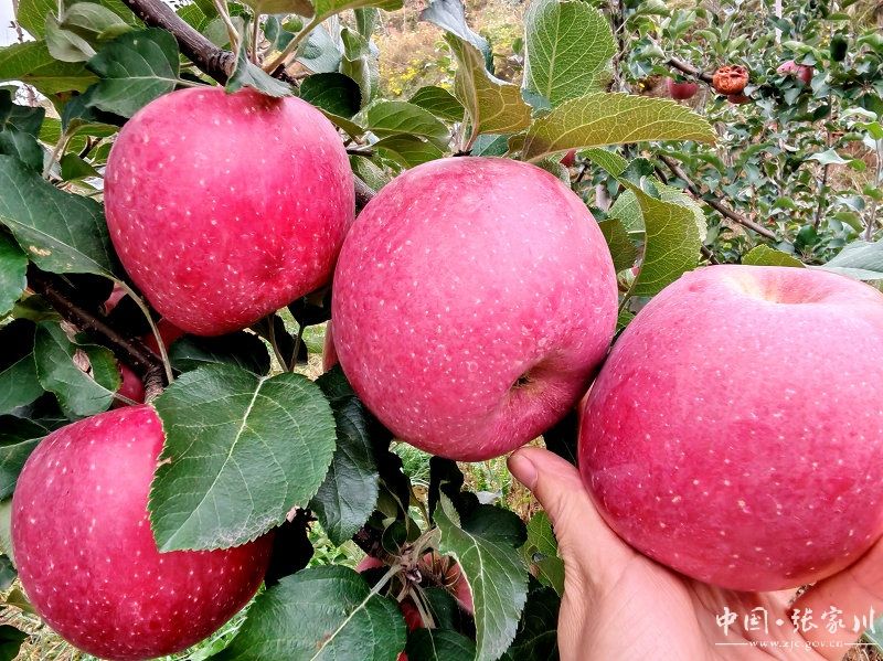 张家川县果业中心主任桑倩文说道:“张家川县境内土层深厚,光照充足,雨量适中,昼夜温差大,具有良好的自然环境和气候条件,生产的苹果鲜红爽脆、香甜多汁,气味幽香纯正,深受广大客商青睐。”