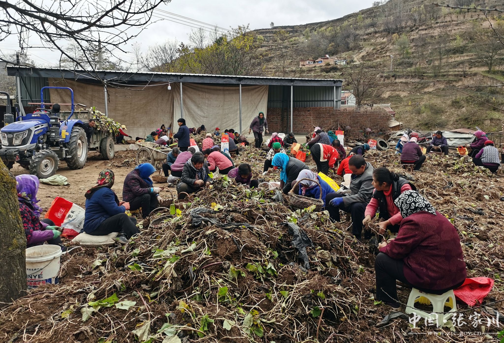 当下,张家川县恭门镇杨坡村的中药材种植基地一片热火朝天的丰收景象。机声隆隆、人头攒动,刨挖、分拣、采摘……每个环节都有条不紊地进行着。