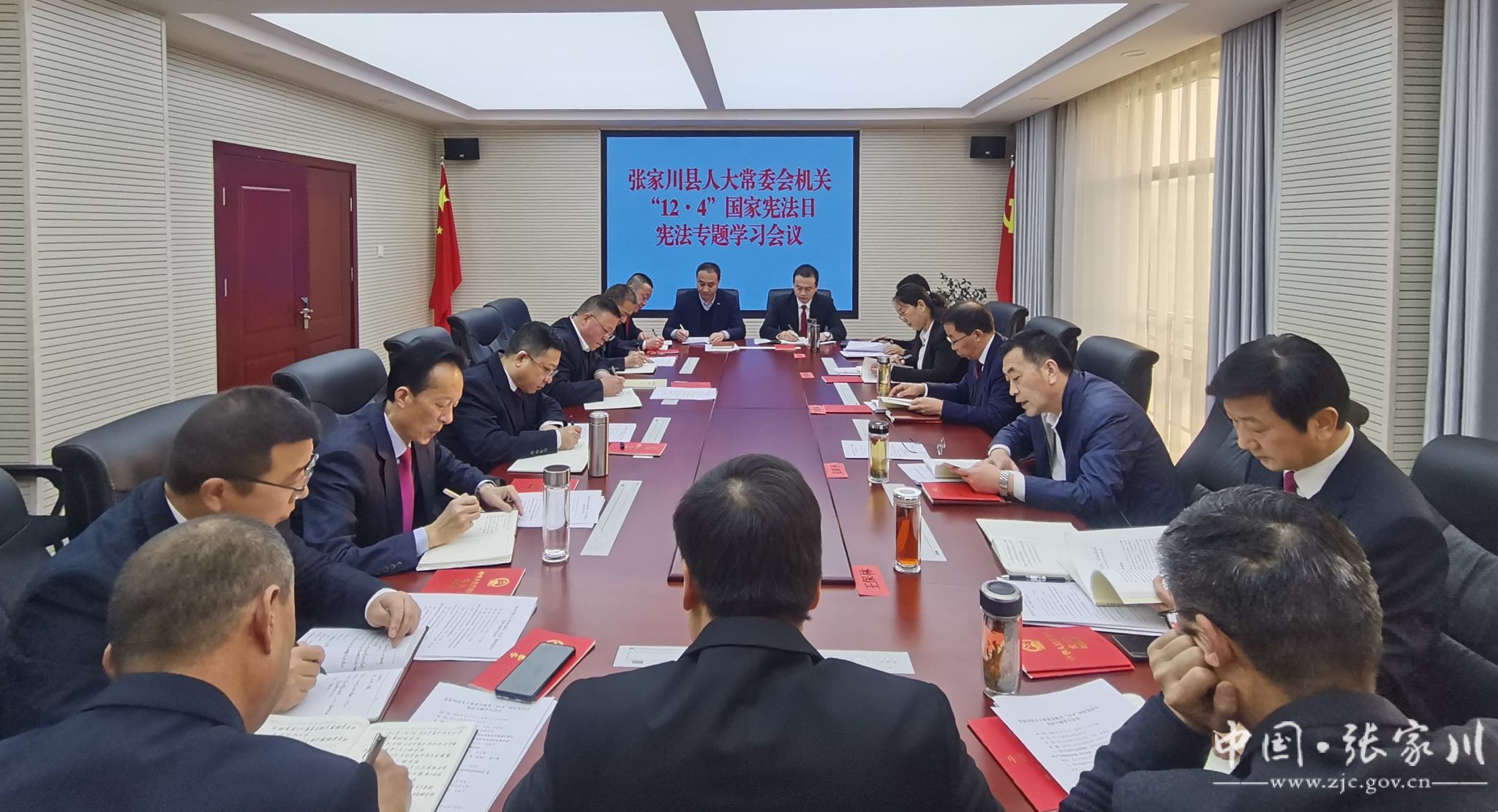 在第十一个国家宪法日之际,12月4日,县人大常委会党组书记、主任牟建林主持召开县人大常委会机关宪法专题学习会议。县人大常委会副主任妥保平、赫金梅、王保林、陈金海和县人大常委会机关全体干部参加宪法专题学习活动。
