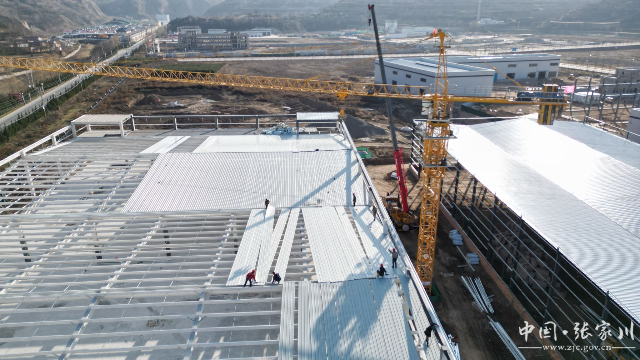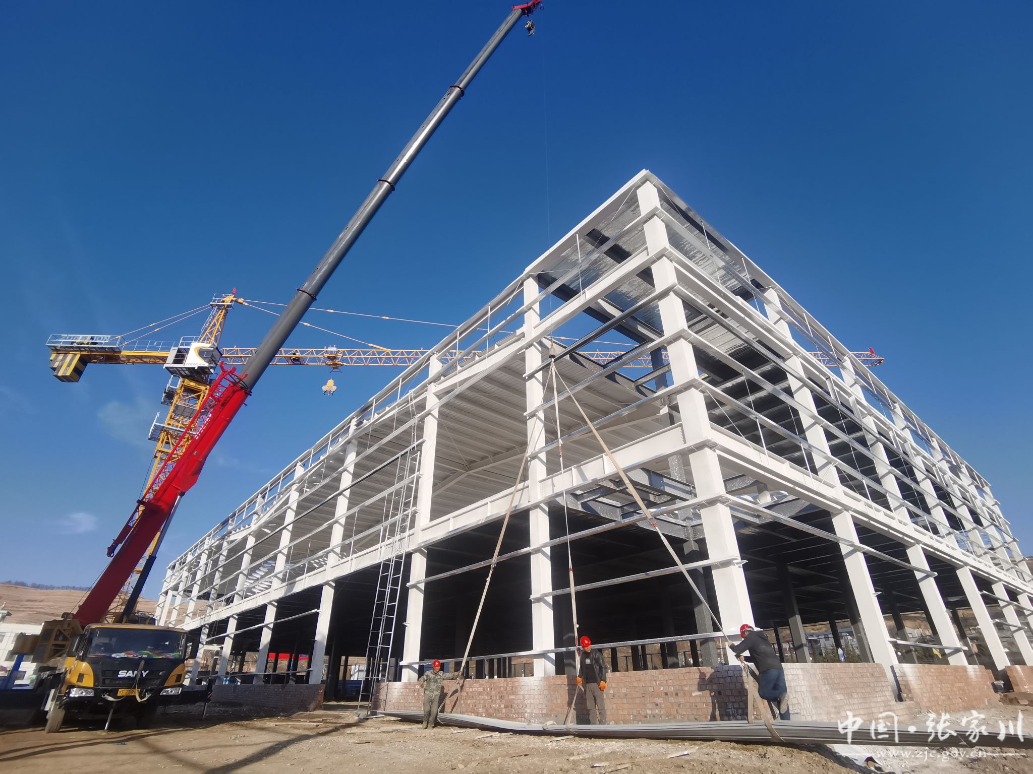 日前,记者在张家川县经济开发区工业园区特色食品产业园建设项目现场看到,工人师傅们加班加点,施工现场各处有条不紊,铲车、挖掘机、运输车等机械不停运转,大型起重升降设备摇臂不停摆动,一派繁忙景象。