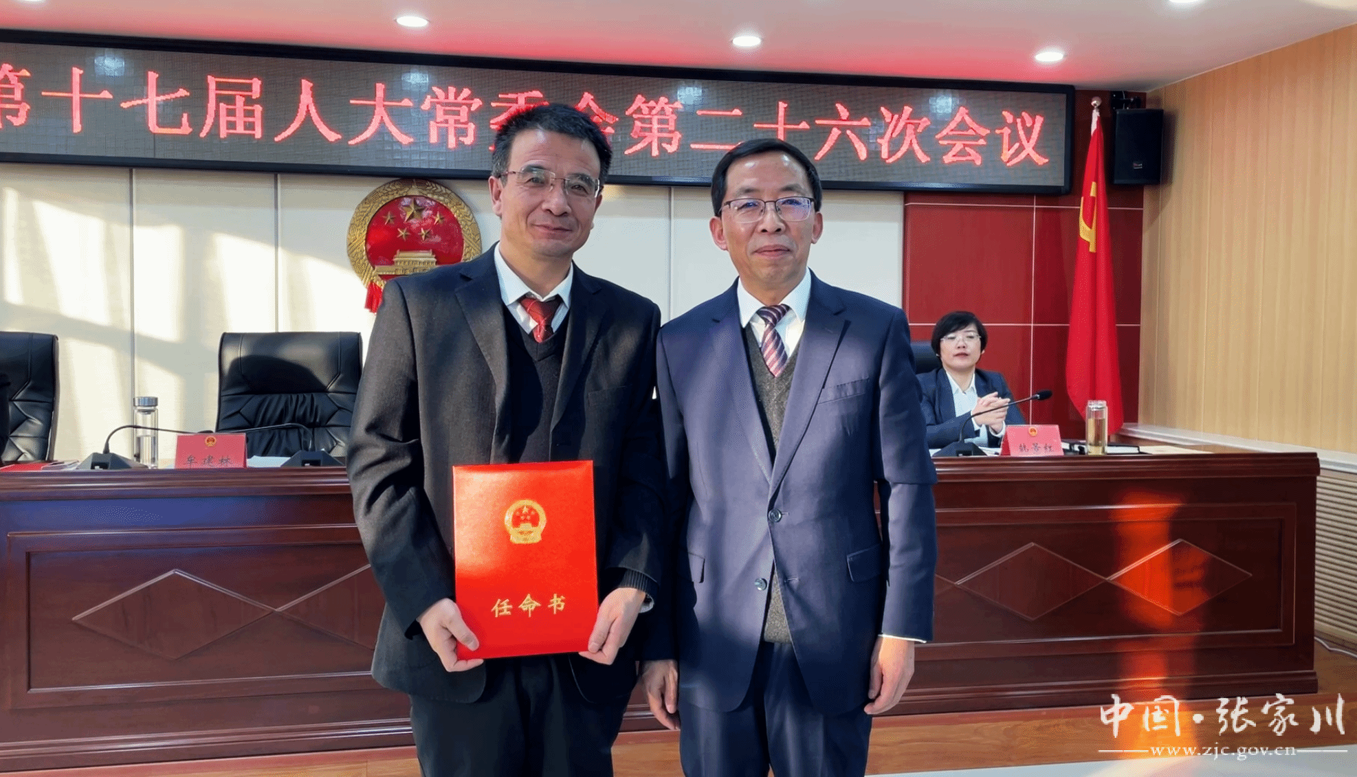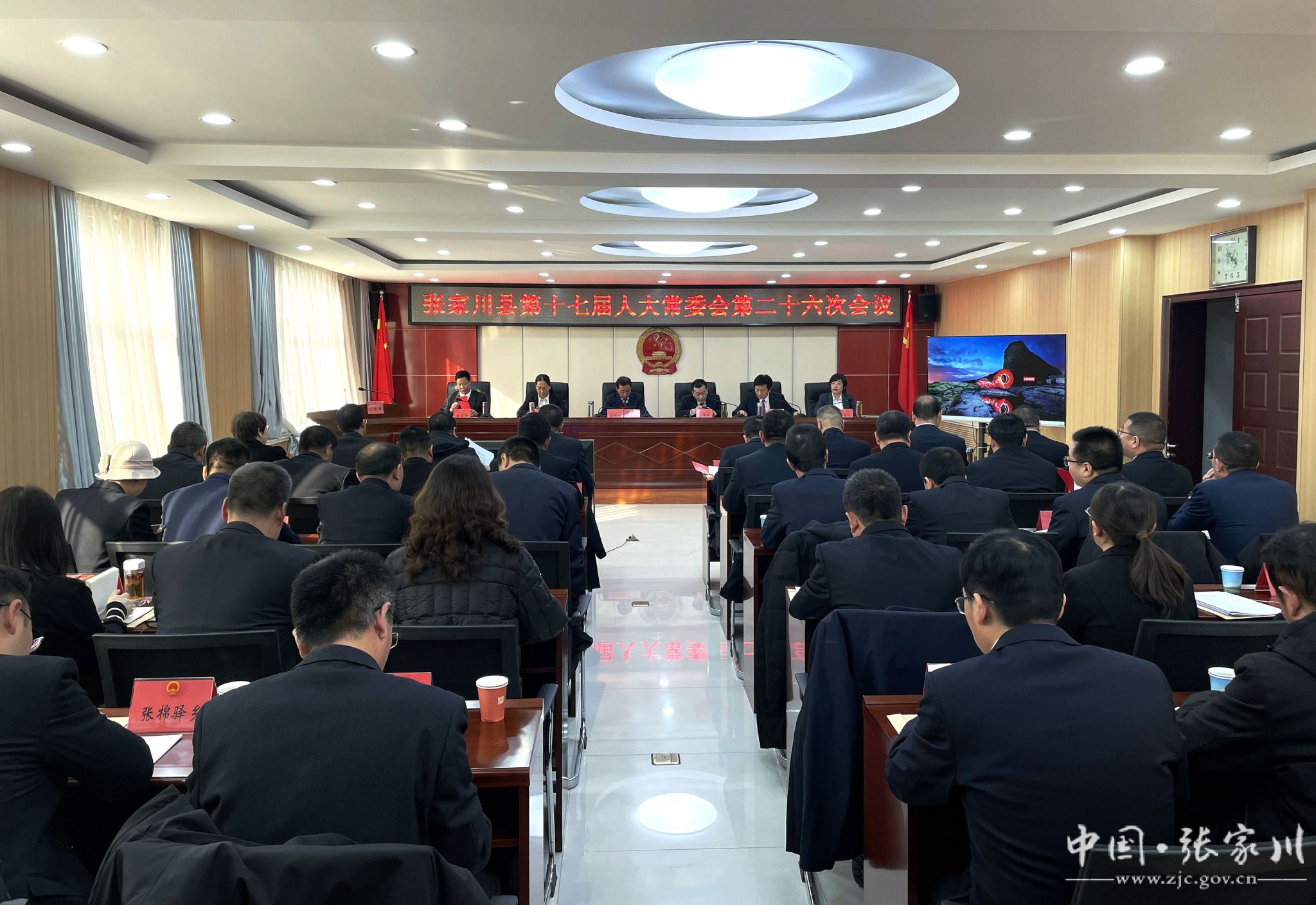 12月17日,张家川县第十七届人大常委会召开第二十六次会议。县人大常委会主任牟建林、副主任王保林分别主持第一、第二次全体会议,县人大常委会副主任妥保平、赫金梅、陈金海出席会议。副县长韩景红和县监委、县法院、县检察院、县政府办、县人社局、县财政局等部门负责人,县人大常委会各委办主任、副主任,县人大代表联络服务中心主任、部分乡镇人大主席、市县人大代表、提请任命人员列席会议。