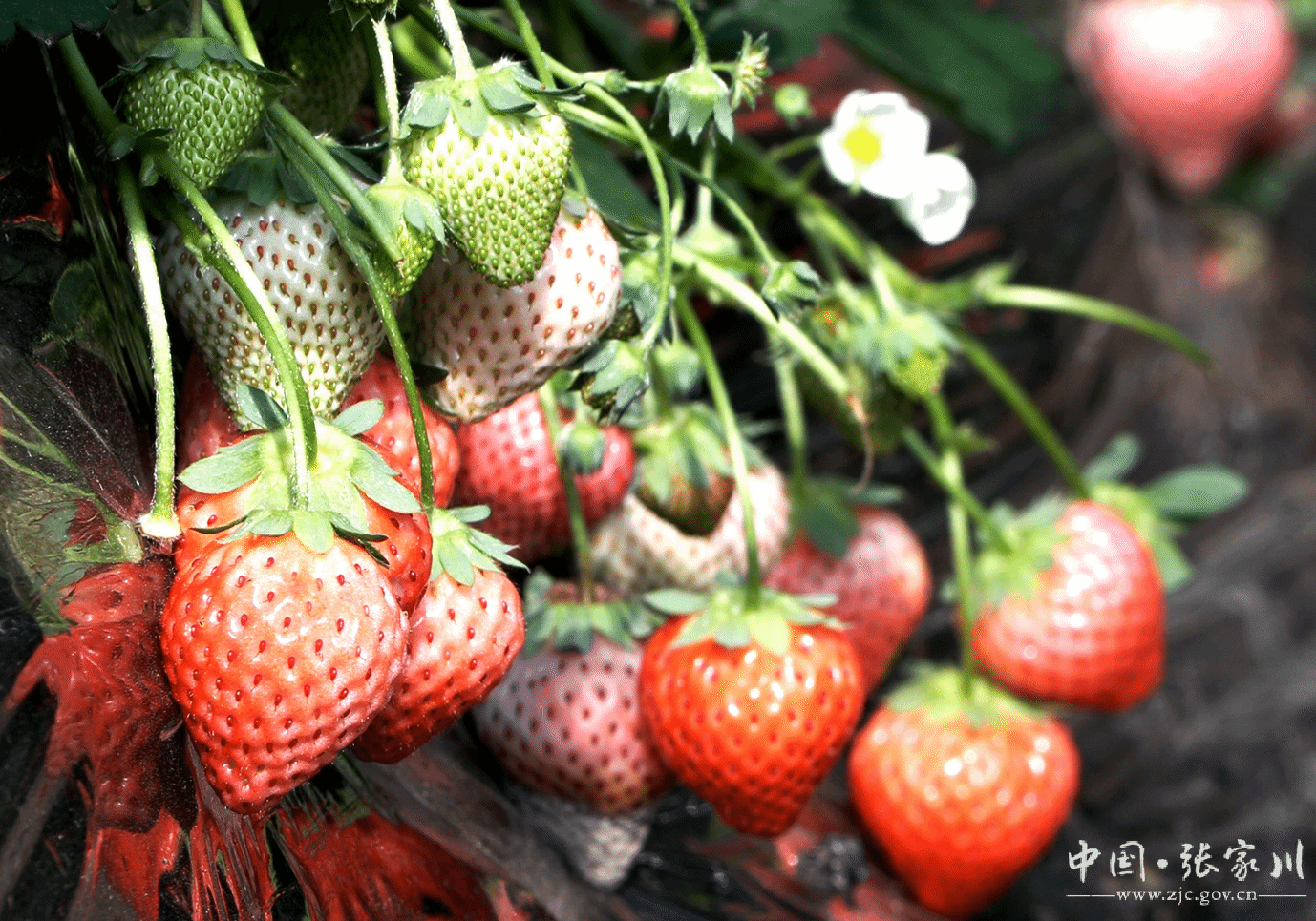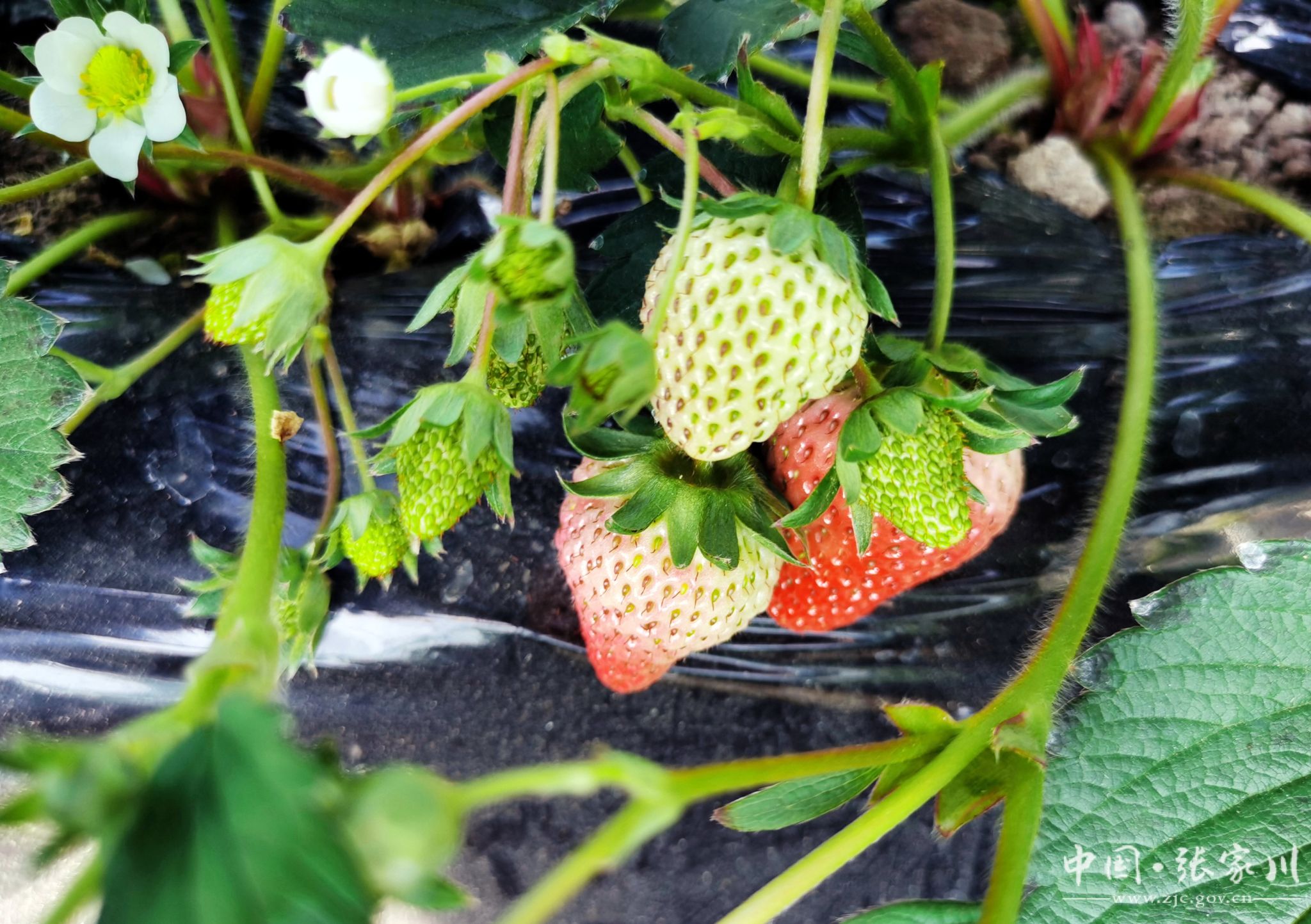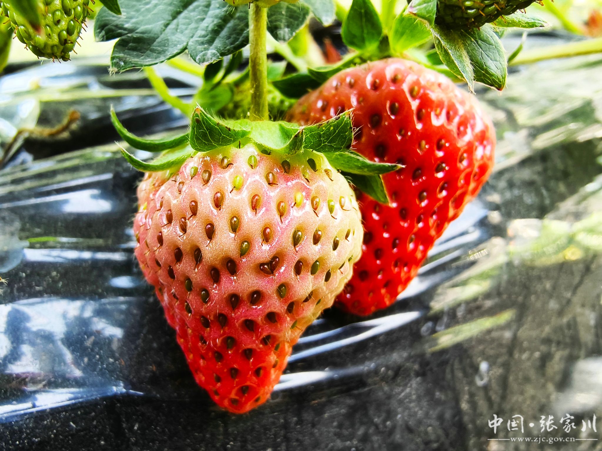 “今年我们合作社栽种了红颜、香野、粉玉二号、天使梦之莹等多个优良品种,由于管理到位,水肥足,草莓整体长势好,色泽鲜艳,个头饱满,甘甜多汁。”合作社负责人马强乐呵呵的说道,“好吃的草莓离不开合理的浇水、施肥。我们的草莓全程不打农药、不用化肥,用本地的动物粪便加山林里的树叶、腐殖土按比例混合经EM菌发酵后作为底肥使用,种植的草莓品质上乘,香味浓郁,口感醇厚!也能让消费者采摘得放心、吃得安心。”