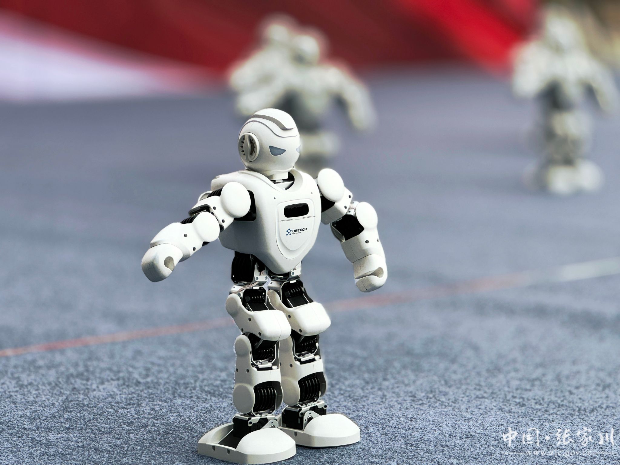 只见12个机器人排兵布阵、列队整齐,随着“凤凰传奇”的歌声响起,机器人“舞动”身姿跳起了广场舞,挥手、叉腰、扭头,吸引得现场男女老少目不转睛,大家不时拍手叫好。压轴出场的“机器人狗”凭借帅气的走姿瞬间成为全场焦点,只见这只活泼的小狗在台上和观众作揖互动,更有高难度动作“空翻”引得现场喝彩声与掌声不断,大家看得起劲,氛围热烈。