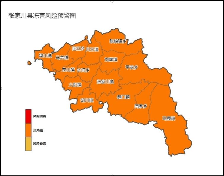 降雪过后,26~27日将出现寒潮天气,城区最低气温将降至-16℃,高海拔地区-20~-16℃,我县冻害风险高。