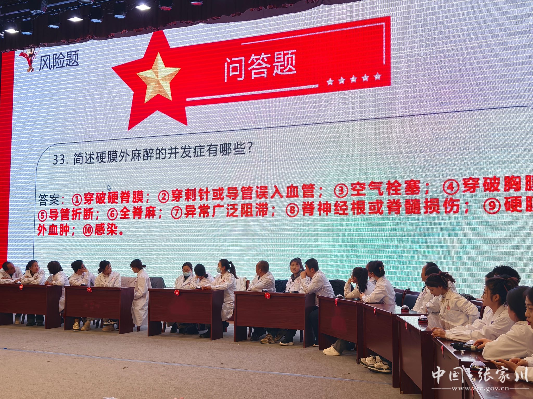 现场气氛热烈、高潮迭起,参赛队员们精神饱满,踊跃积极答题,拼答题速度、拼反应能力、拼知识储备,现场掌声此起彼伏。各参赛选手充分展现了积极进取、锲而不舍的学习精神和精益求精、好学深思的医护职业精神以及过硬的理论素质和良好的精神风貌。
