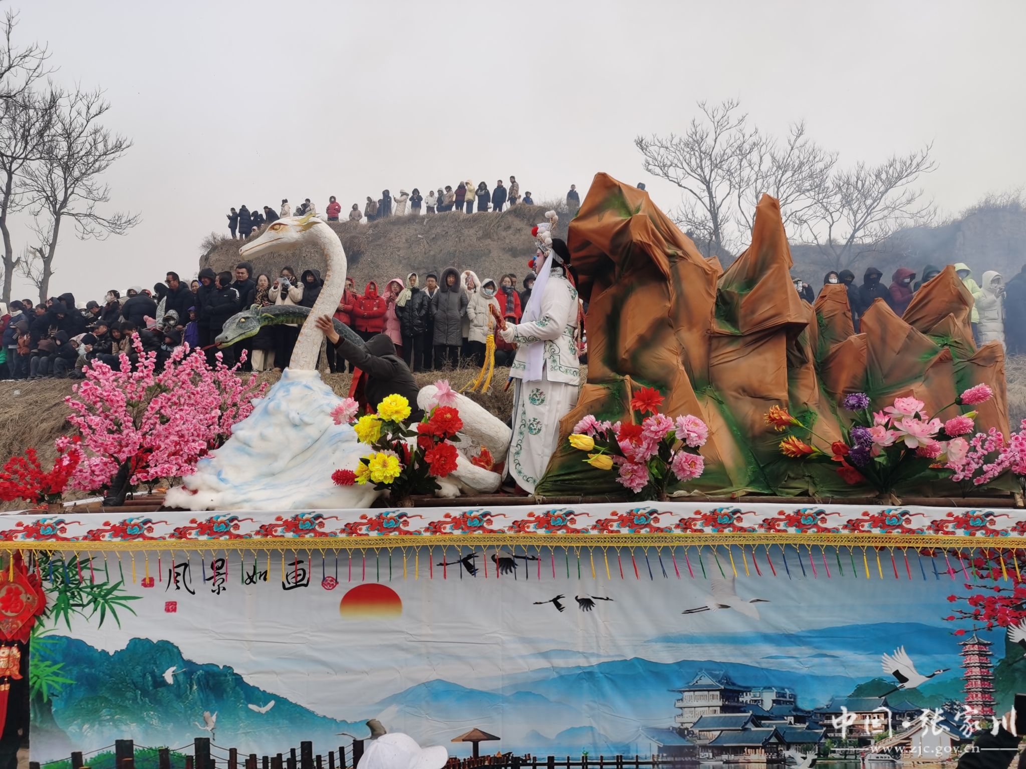 金蛇吐瑞闹新春,春满山河万象新。2月5日,乙巳蛇年农历正月初八。一大早,张家川县马关镇西台村锣鼓喧天,一年一度的耍社火如期而至。除了来自龙山、梁山、连五等乡镇的社火表演队,邻县庄浪县朱店镇高庙村,盘安镇的社火表演队也纷纷前来助兴,一队队社火在锣鼓声和人们的欢呼中轮番上演,街道两旁、广场里一派热闹的景象。