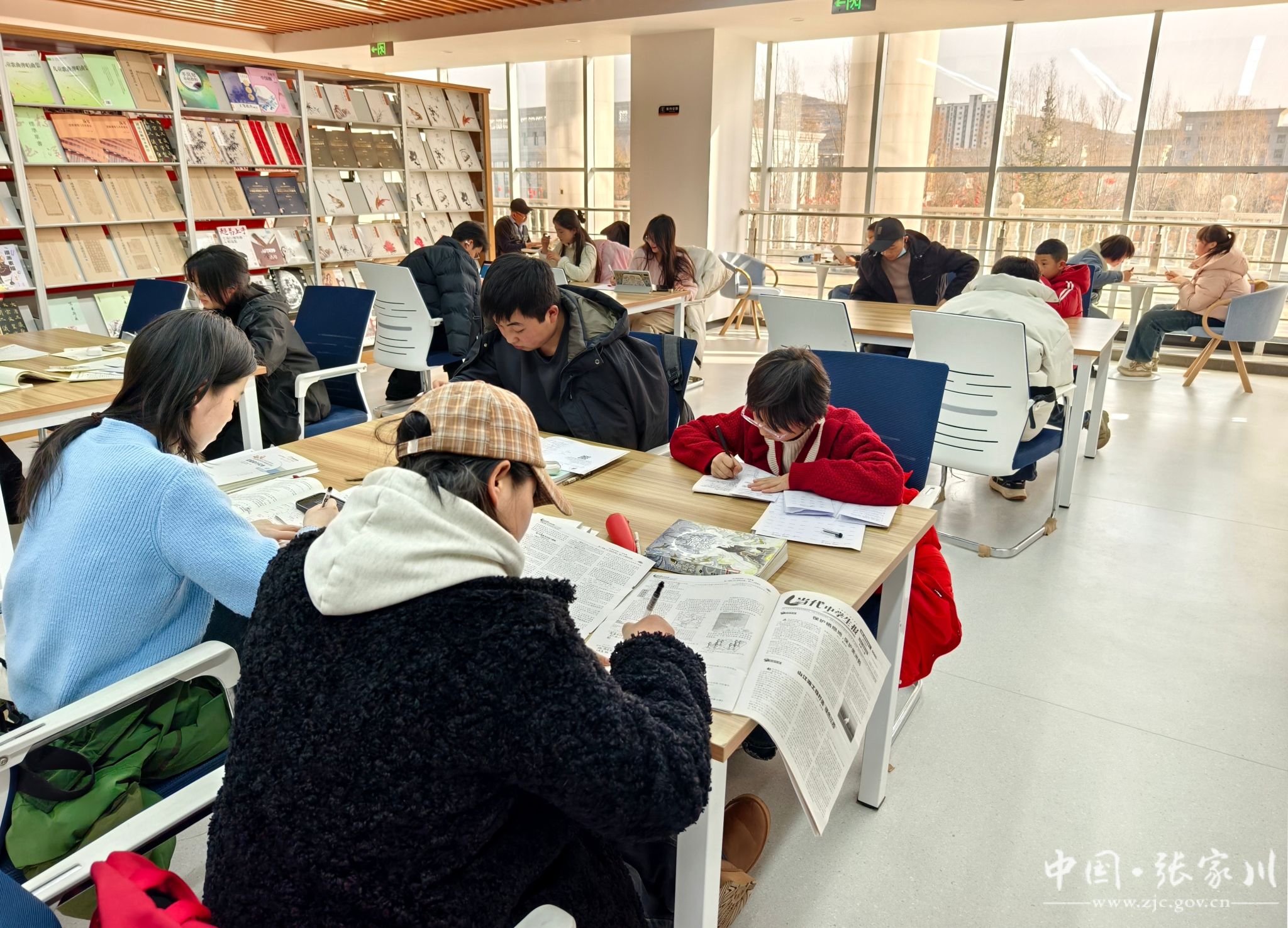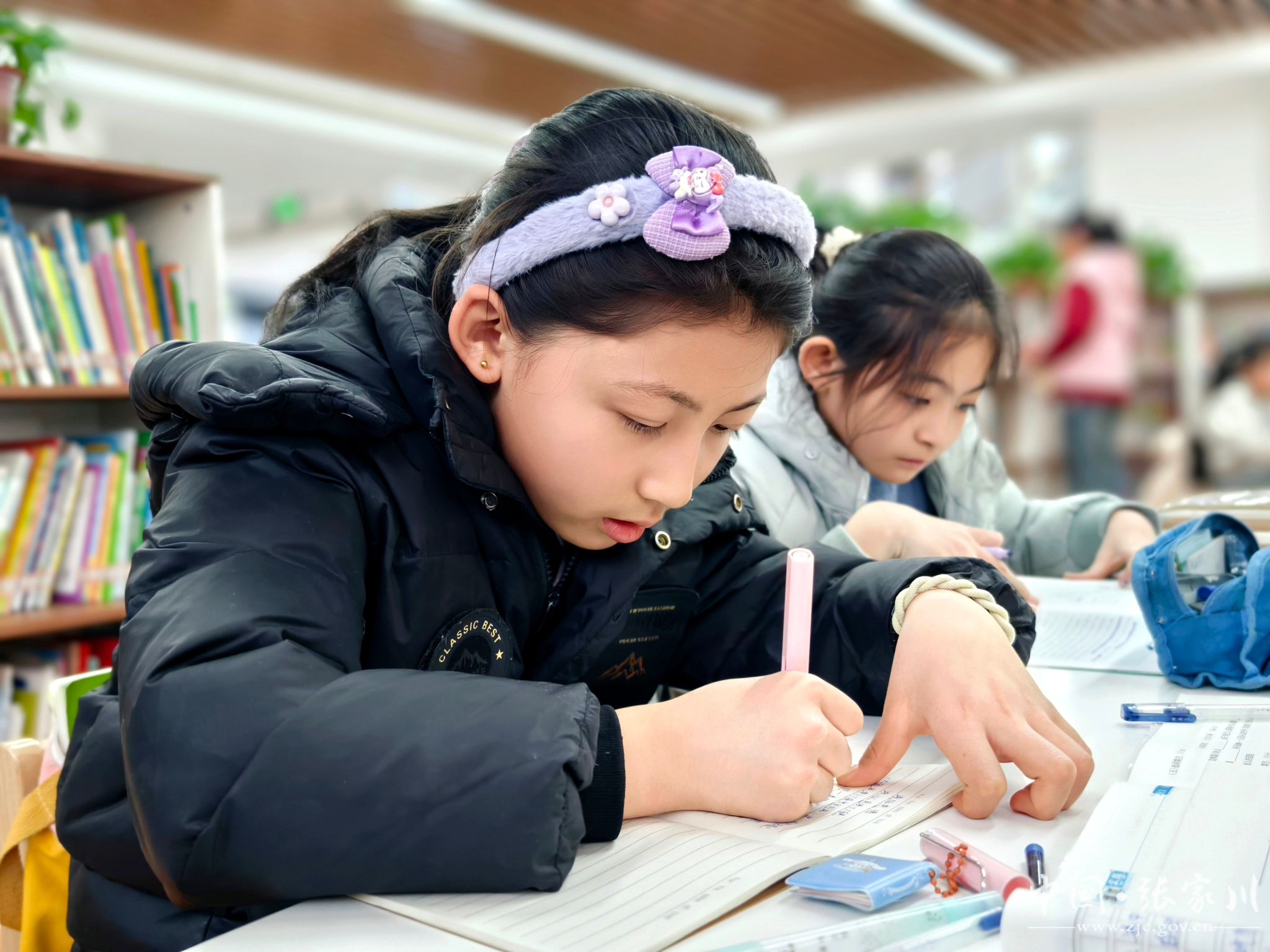 在图书馆二楼阅读区,新建小学五年级学生李勤宸和小伙伴们正聚精会神地读书。“寒假期间,我大部分时间都来图书馆读书,已经读完了《鲁滨孙漂流记》《中国古代寓言》等书籍。这里环境好、学习氛围浓厚,各类图书应有尽有。阅读让我的寒假和春节变得更充实更有意义。”李勤宸说。
