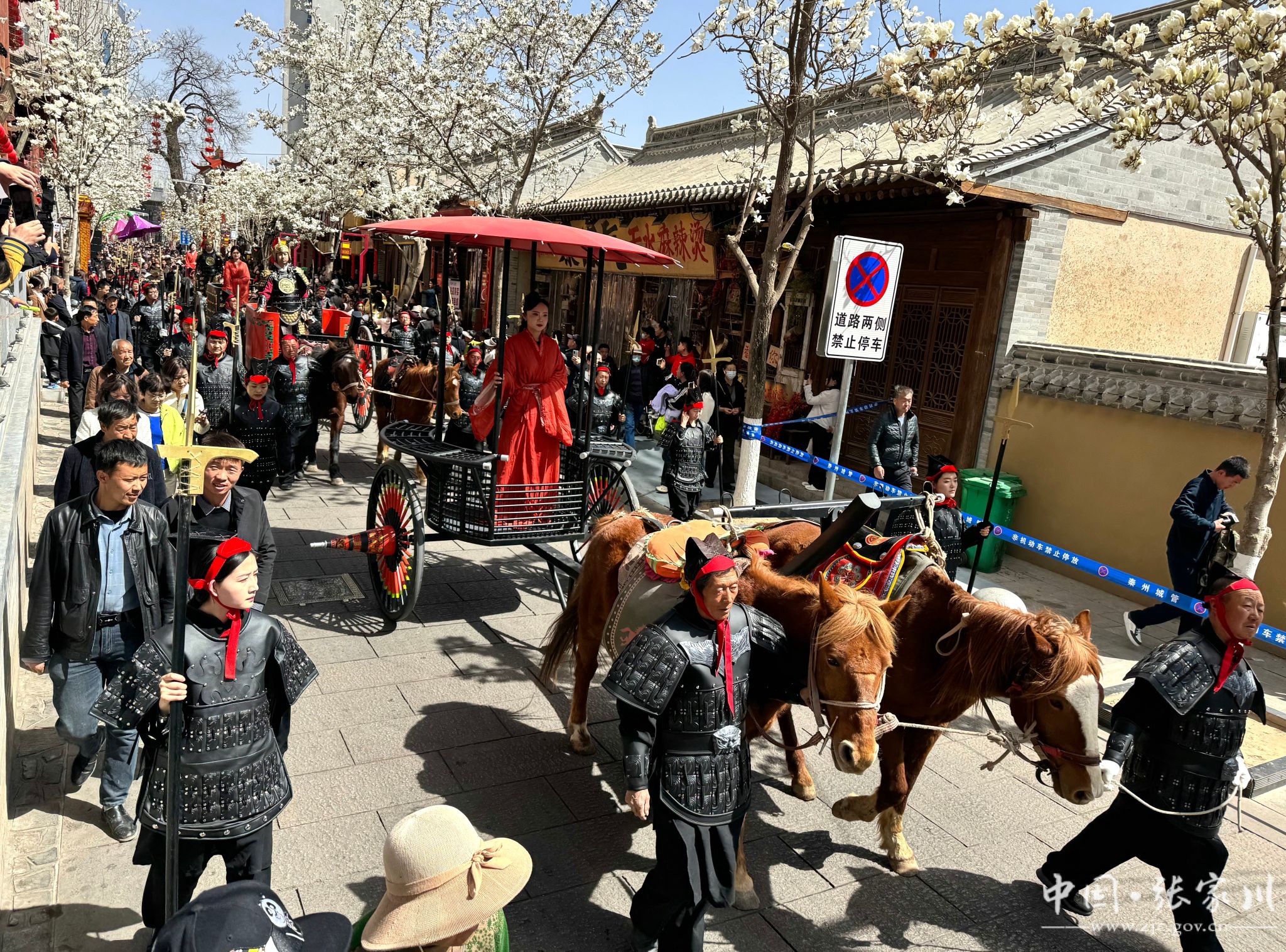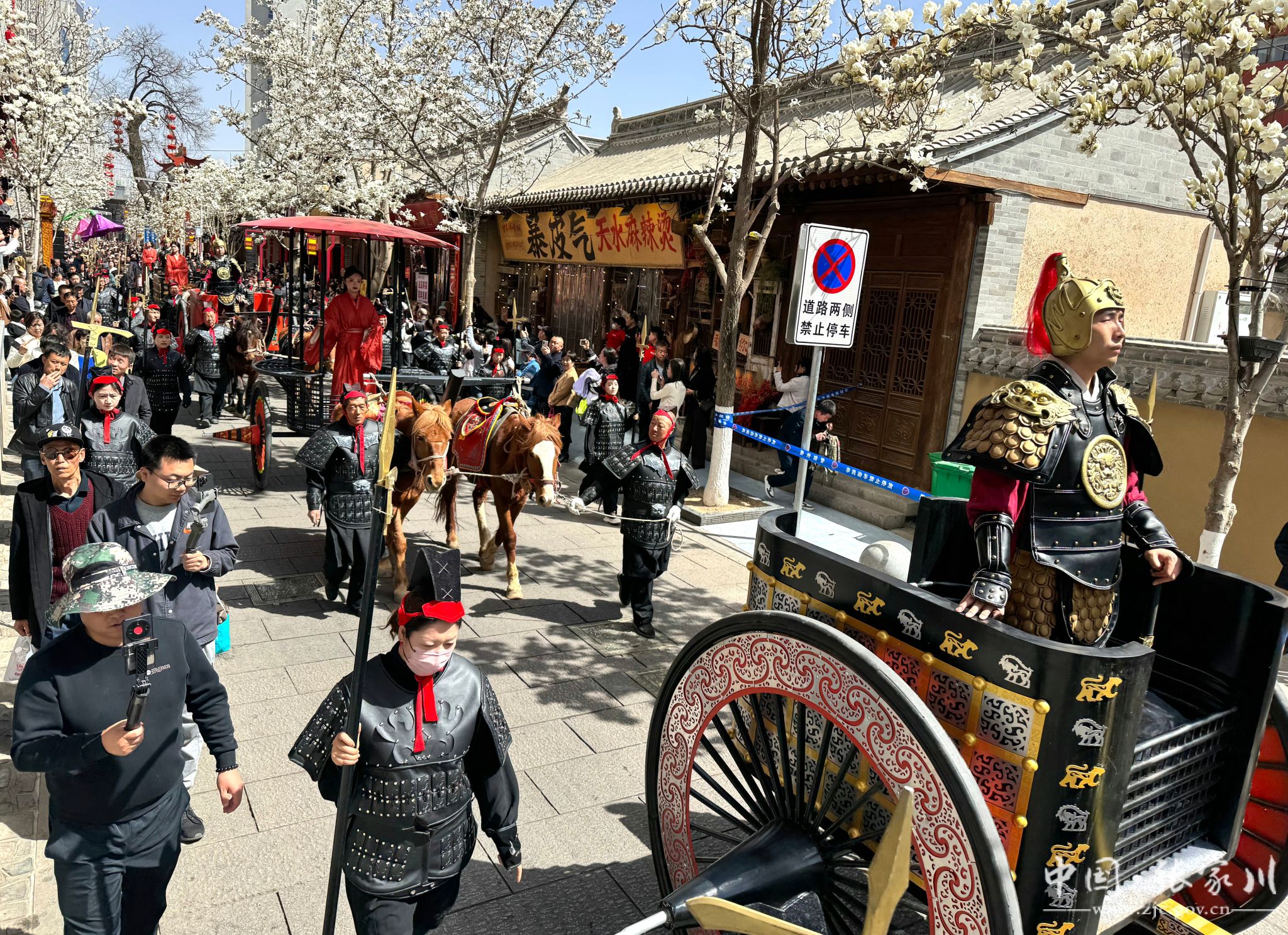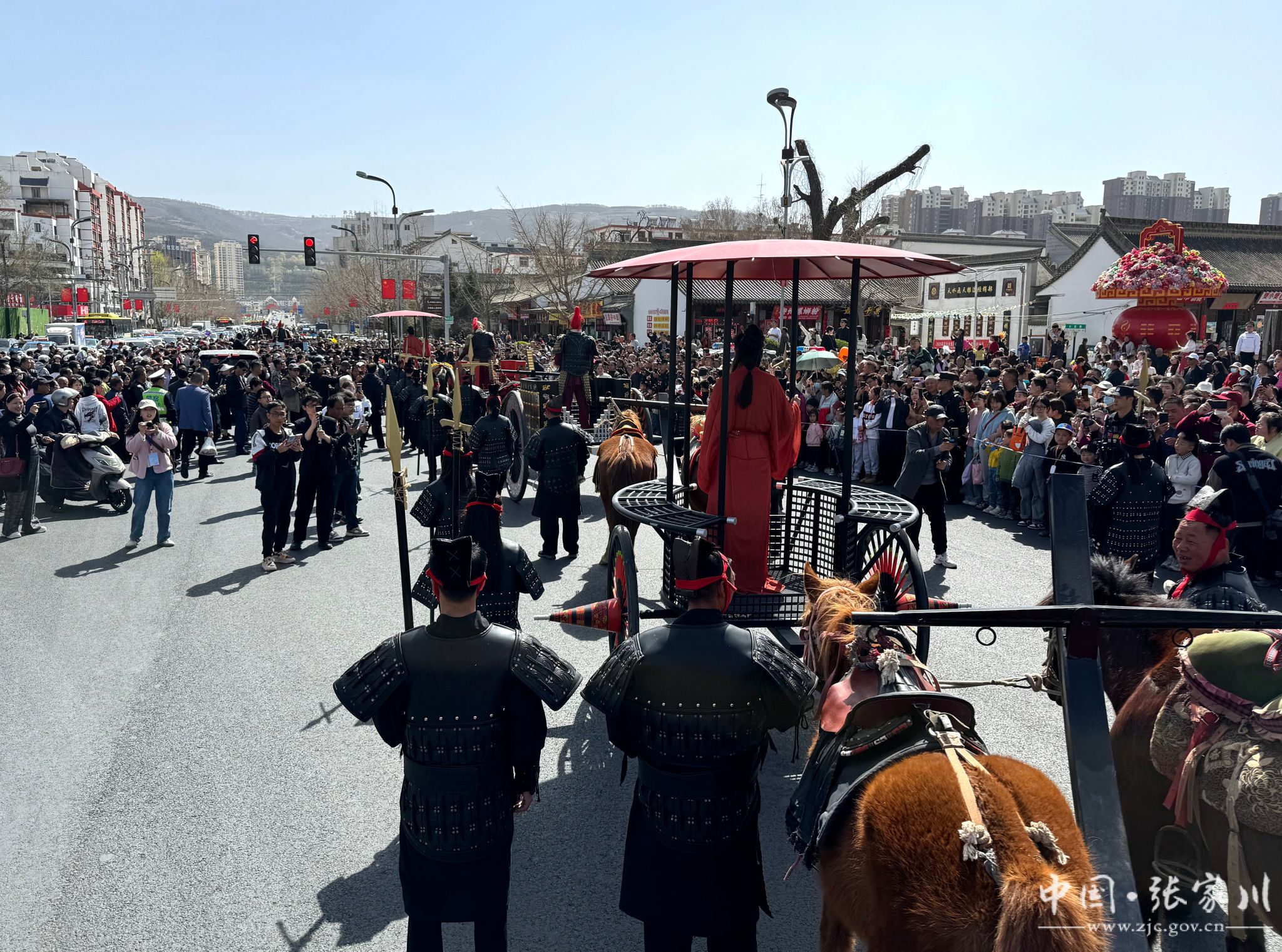 3月23日,张家川县马家塬西戎战车巡游秦州城,助力天水文旅嘉年华,为现场市民及游客带来了一场穿越时空的视觉盛宴,让人们近距离领略到古代马车的独特魅力与张家川县的深厚历史文化底蕴。