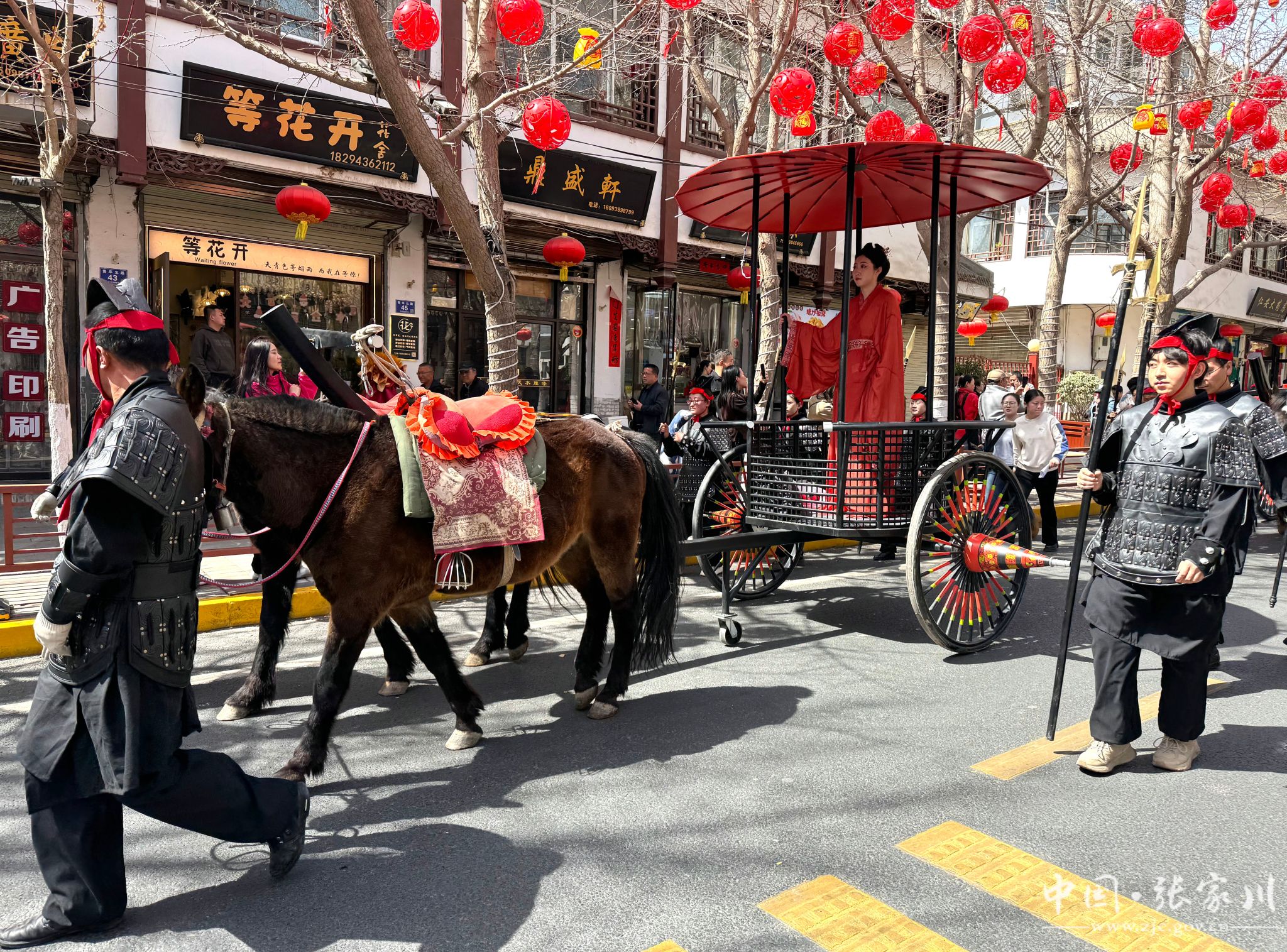活动现场,10辆精心还原的古代马车沿着长街缓缓走过,这些马车造型精美,装饰华丽,每一处细节都尽显古代工匠的精湛技艺。高大俊朗的马匹,整齐有序的马队,豪华浩荡的车队,引来众多市民及游客驻足观赏,竞相拍照留念。
