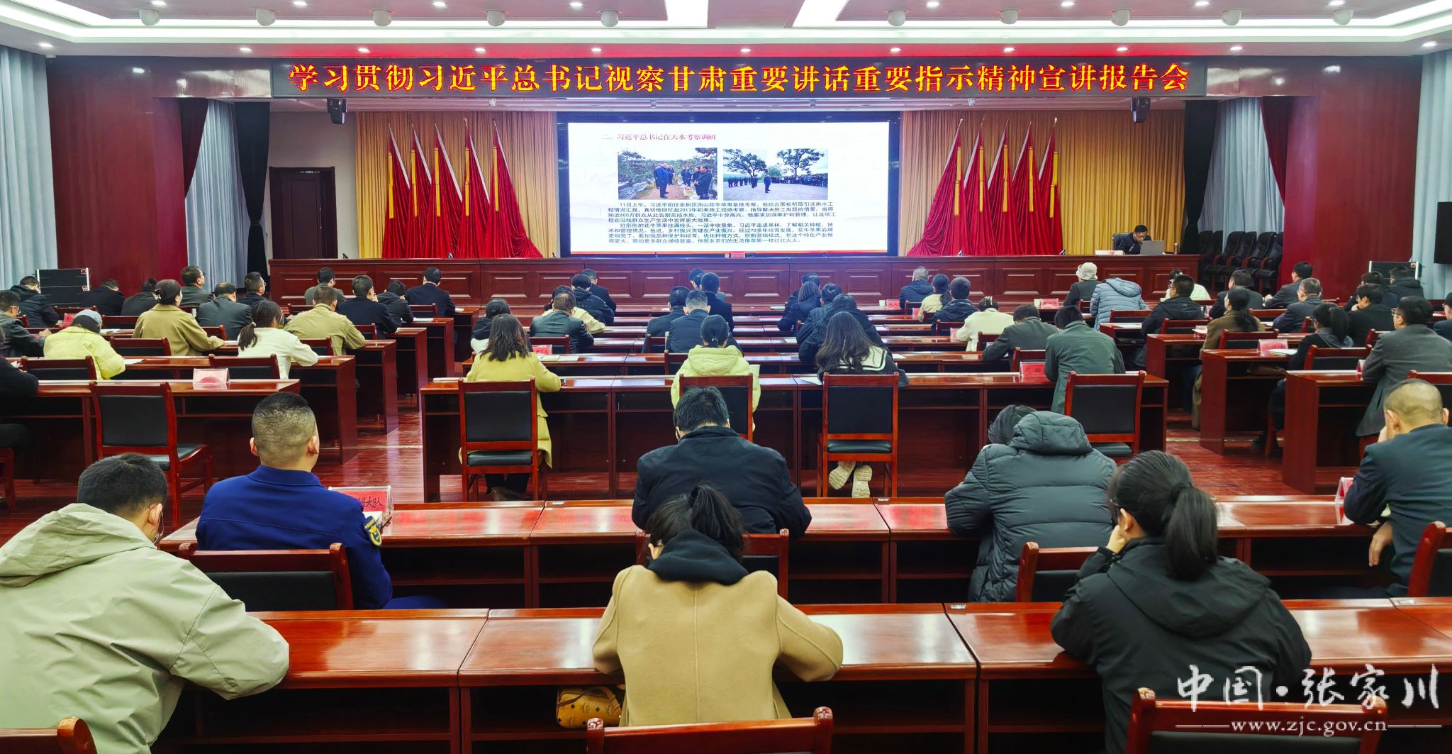 3月28日,张家川县学习贯彻习近平总书记视察甘肃重要讲话重要指示精神宣讲报告会在行政礼堂举行。邀请天水市委讲师团团长张耀进宣讲。全县机关单位及各乡镇负责人参加。