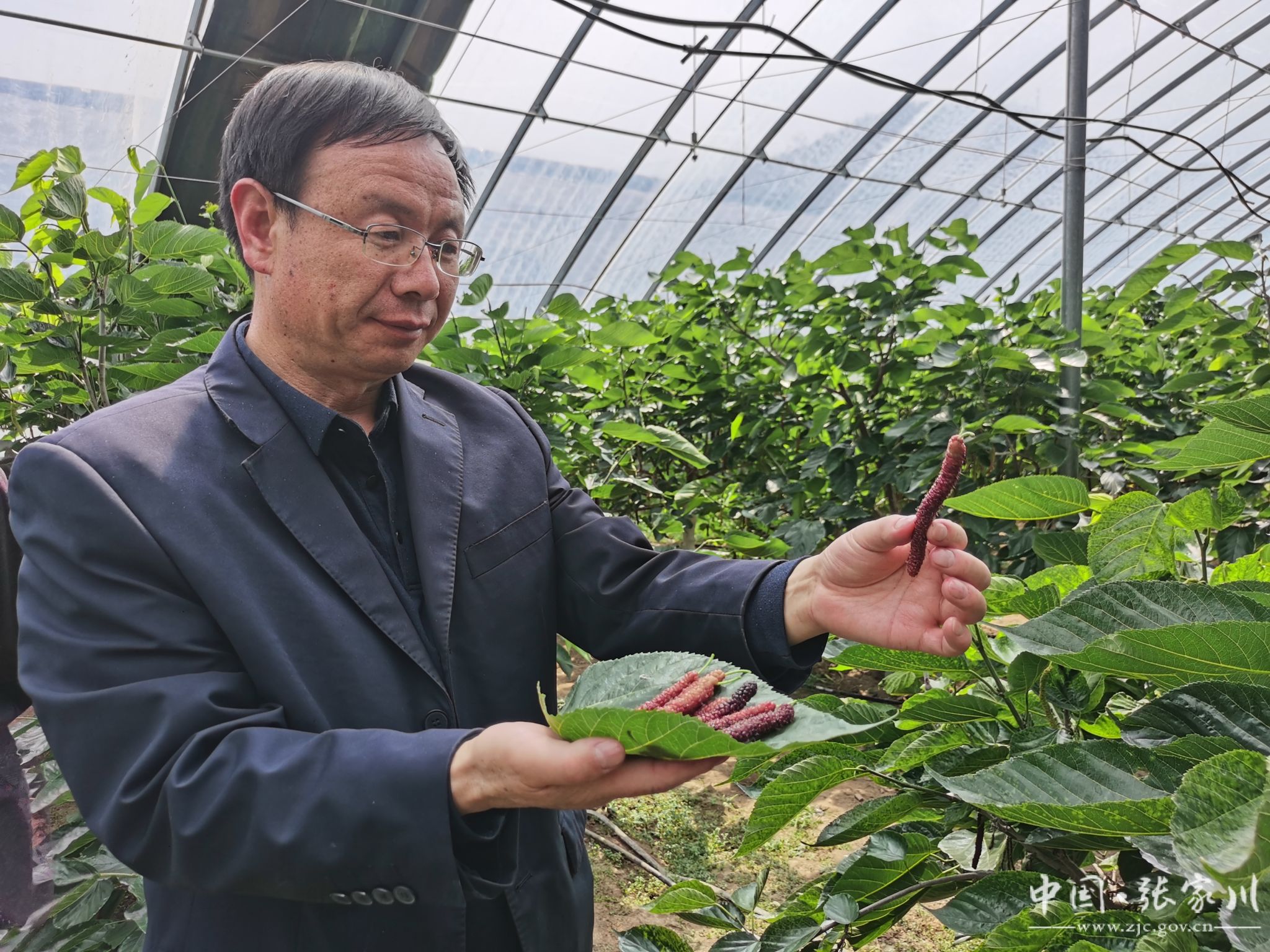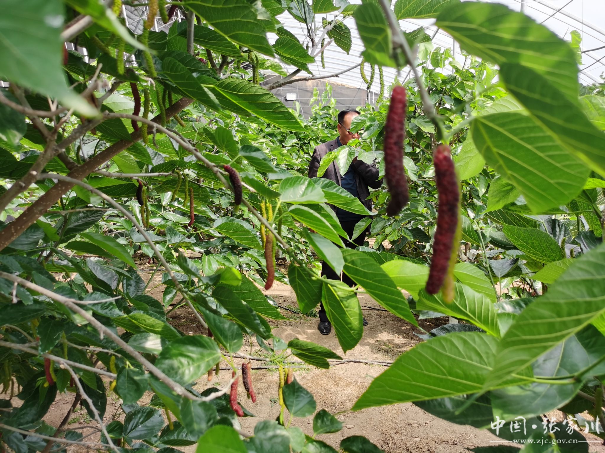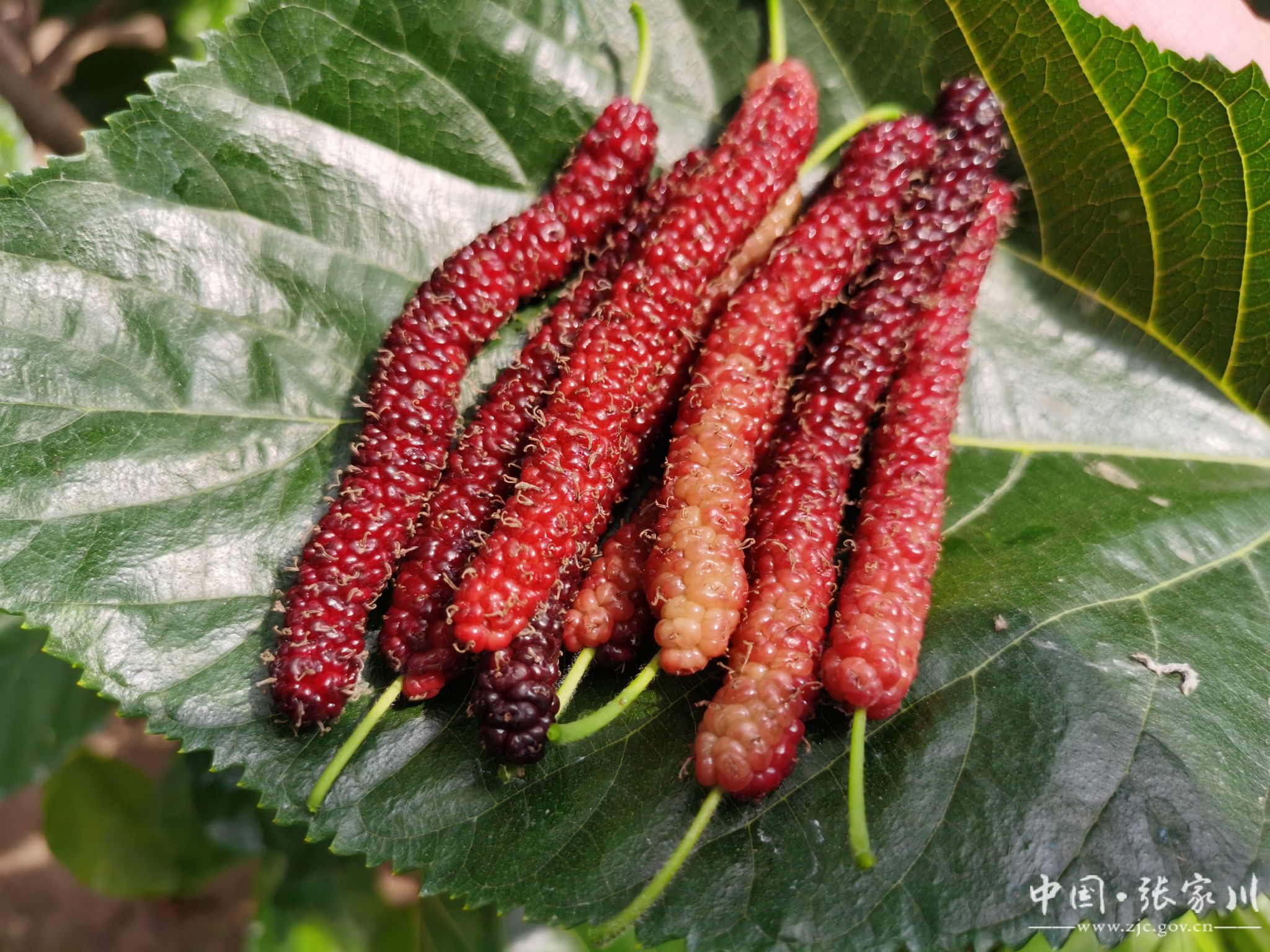 除了草莓,鹏强合作社引进种植的台湾长果桑也获得丰收。长果桑抗病成活率高,枝条抽生能力较强,喜光喜温,每年3月,6月,9月挂果并产果。成熟的长果桑果长12 - 16公分,最长可达18公分,单果重20克,果实成熟后粉红色,熟透时紫黑色,味道香甜可口,受到前来采摘品尝的顾客一致好评。目前,鹏强合作社也新购置了烘干机方便贮存。