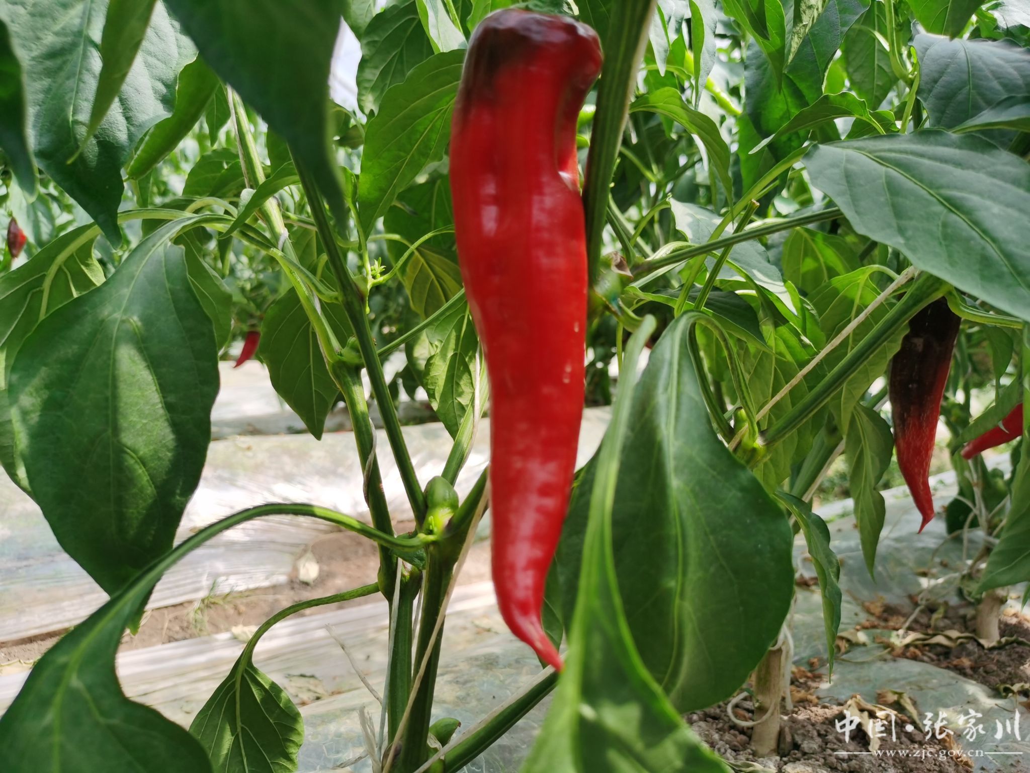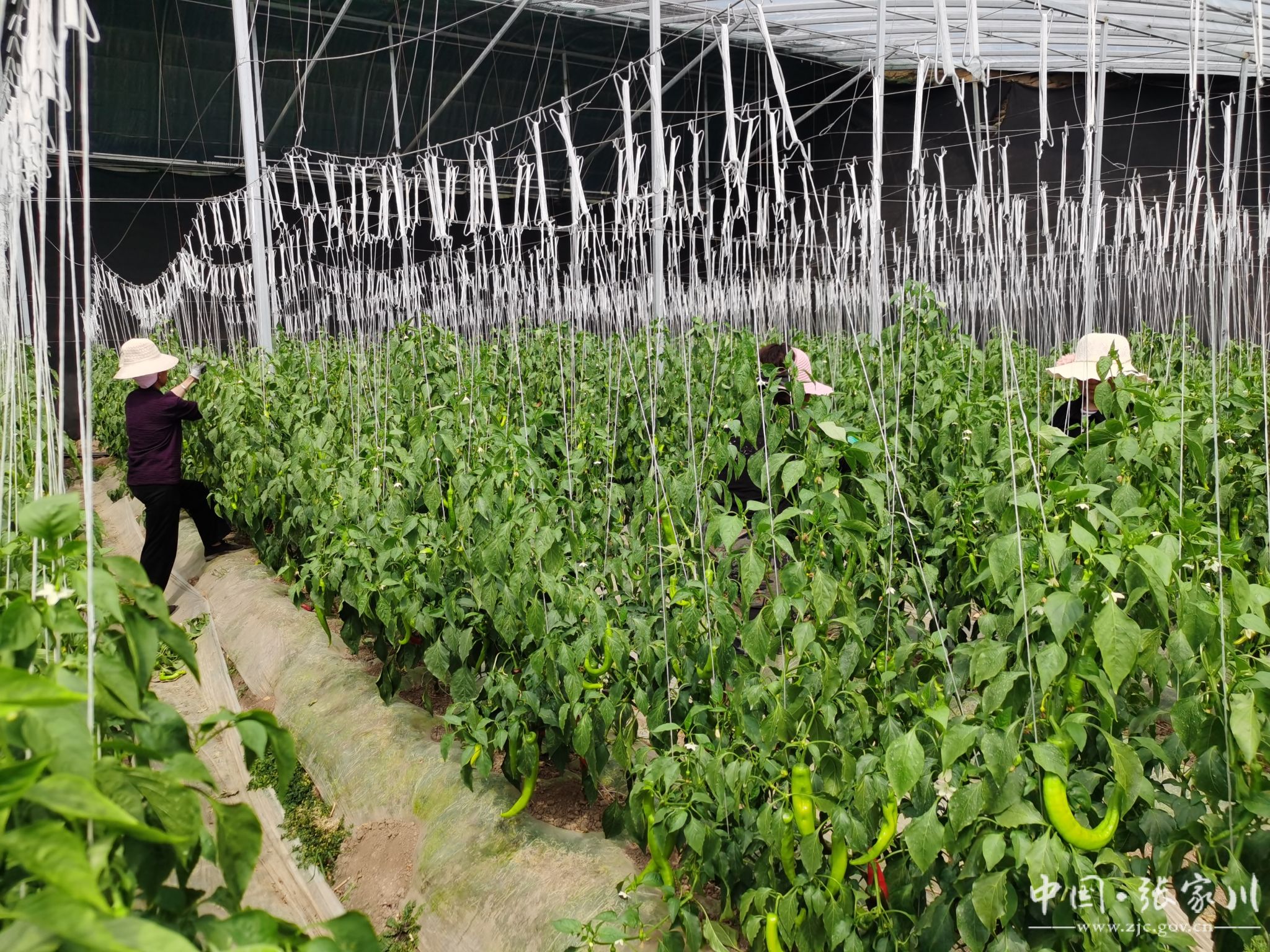 同时,鹏强合作社的辣椒大棚里充满了欢声笑语,原来是村民们和游客正在采摘辣椒,今年辣椒也取得了大丰收,收益良好。