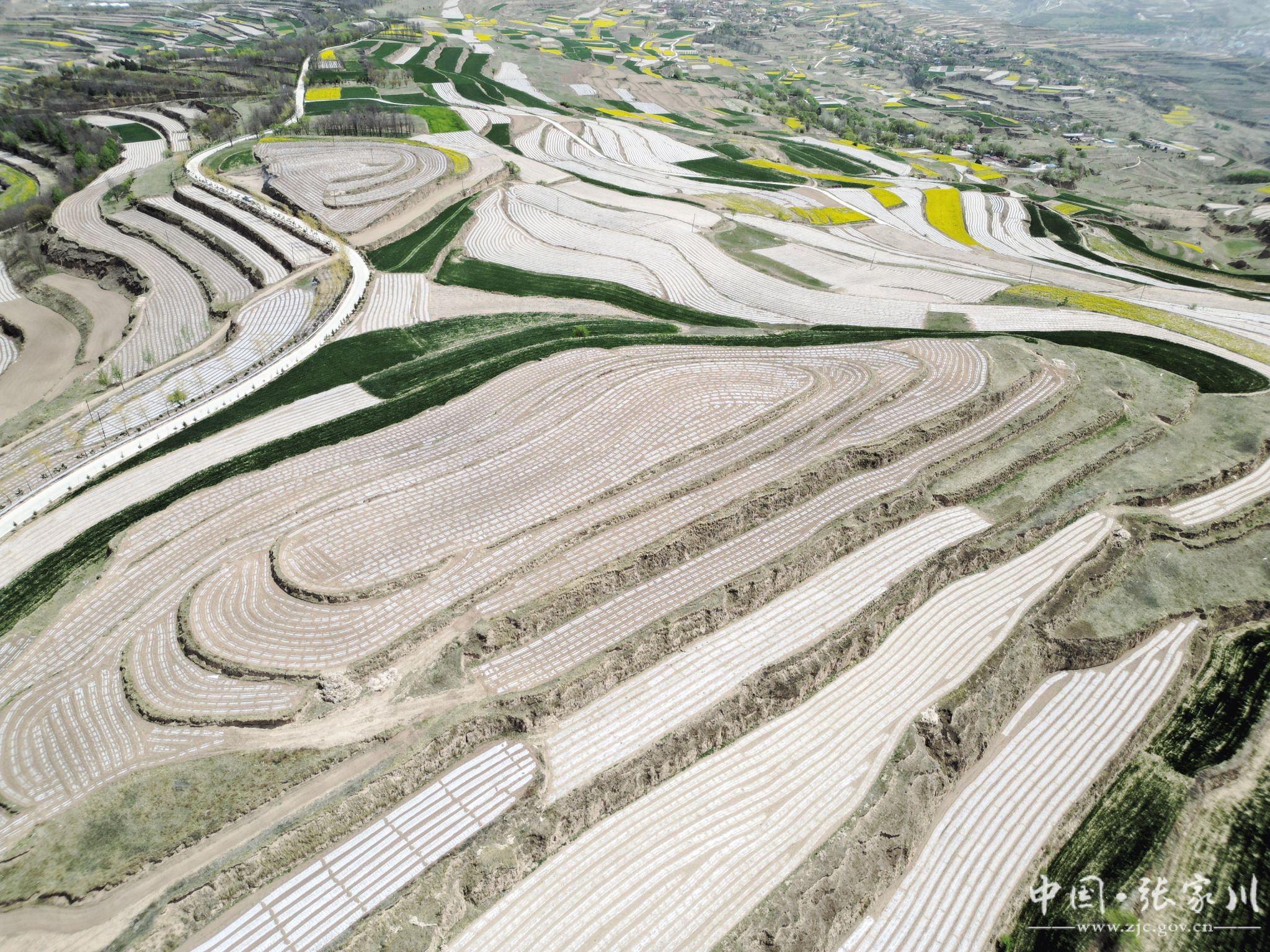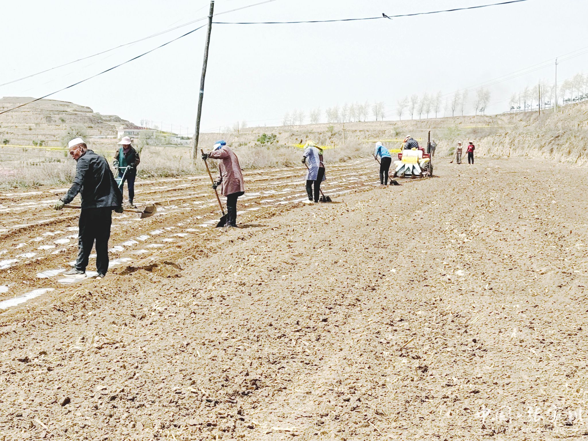 春日的张家川县梁山镇,地膜在阳光下银光闪烁,与来回耕种的群众勾勒出一幅生机勃勃的春耕画卷。